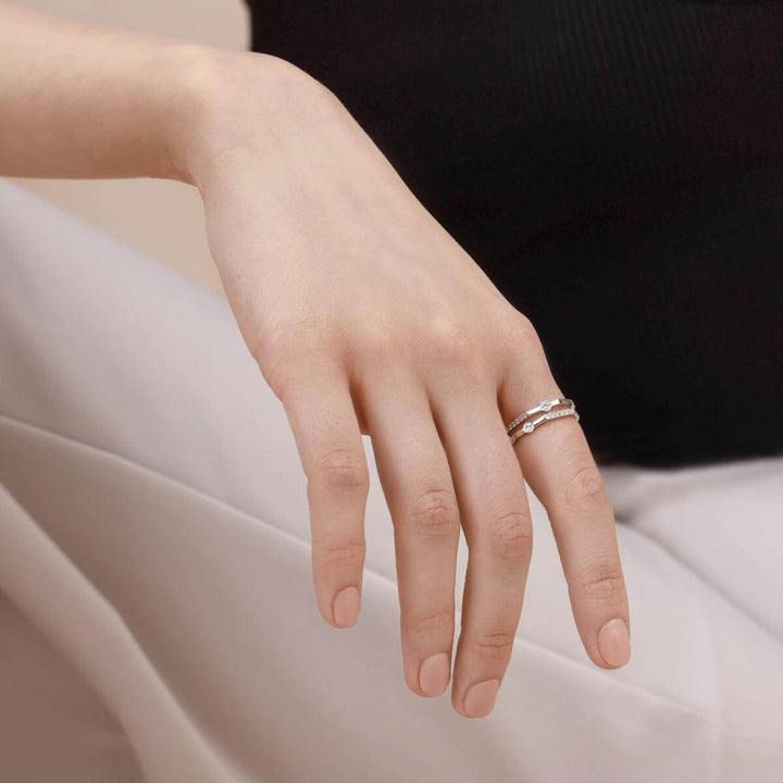 Based in Hong Kong, Emphasis shares a fresh take on fine jewelry with a focus on everyday elegance. Combining innovative designs, precious materials and superior craftsmanship, Emphasis creates pieces expressing multifaceted beauty. Believing well-designed jewelry is all about unique details, every piece by Emphasis will draw you in for a closer look. Emphasis also collaborates with talented designers to create jewelry collections that will surprise and delight.Style notes: Deconstructing and reconstructing the brand logo “M', the neat design is blended with angling geometric flair. This 18K white gold double ring is bound irregularly; adorned with ravishing diamonds, it crowns everyone's multi-faceted versatility with immeasurable honour.Price: Please note price may vary due to exchange rate differences or shipping, duties and taxes. Price may also vary with materials choice. Final price is calculated at checkout at the designer's website. Materials: 18k gold with round brilliant diamonds, total carat weight 0.34 ct.
