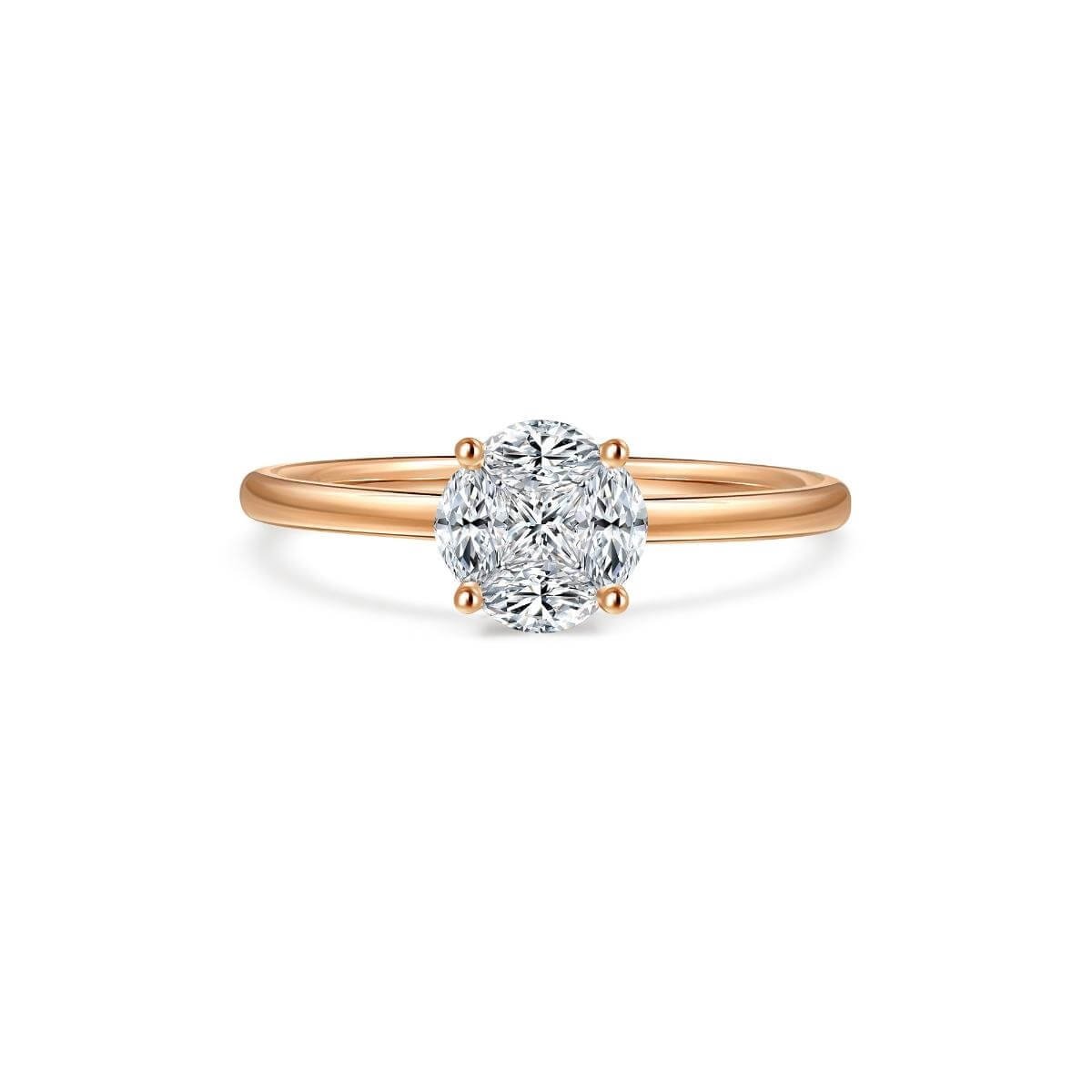 Based in Hong Kong, Emphasis shares a fresh take on fine jewelry with a focus on everyday elegance. Combining innovative designs, precious materials and superior craftsmanship, Emphasis creates pieces expressing multifaceted beauty. Believing well-designed jewelry is all about unique details, every piece by Emphasis will draw you in for a closer look. Emphasis also collaborates with talented designers to create jewelry collections that will surprise and delight.Style notes: This exquisite rose gold ring features marquise-cut diamonds and the centre princess-cut diamond seamlessly set together, creating a magnificent and larger round diamond. This ring with the unique 'M' setting is delicately elegant, perfect for every occasion. The jewellery shown here is large size.Price: Please note price may vary due to exchange rate differences or shipping, duties and taxes. Price may also vary with materials choice. Final price is calculated at checkout at the designer's website. Materials: 18k gold with marquise brilliant diamonds, total carat weight 0.28 ct and 1 princess cut (square modified brilliant) diamond, total carat weight 0.1 ct, colour G-H, clarity SI1-SI2
