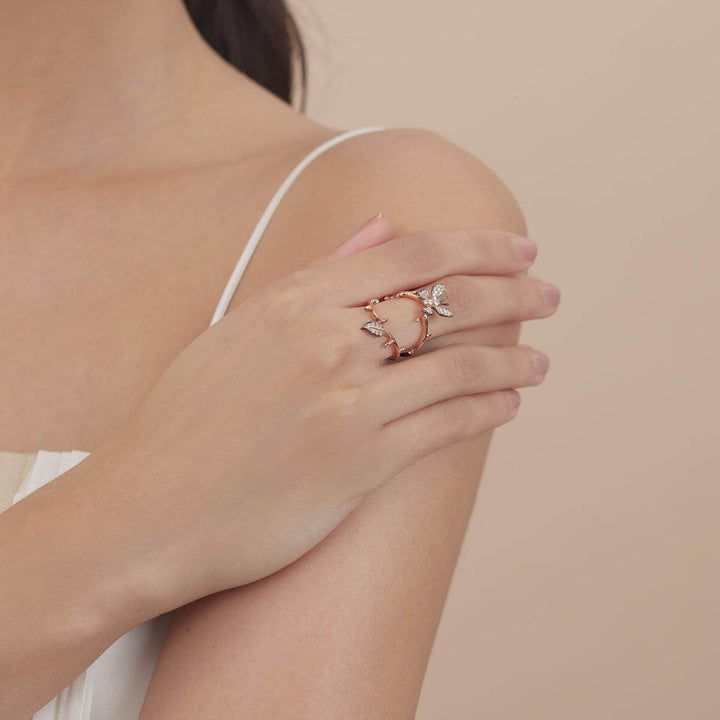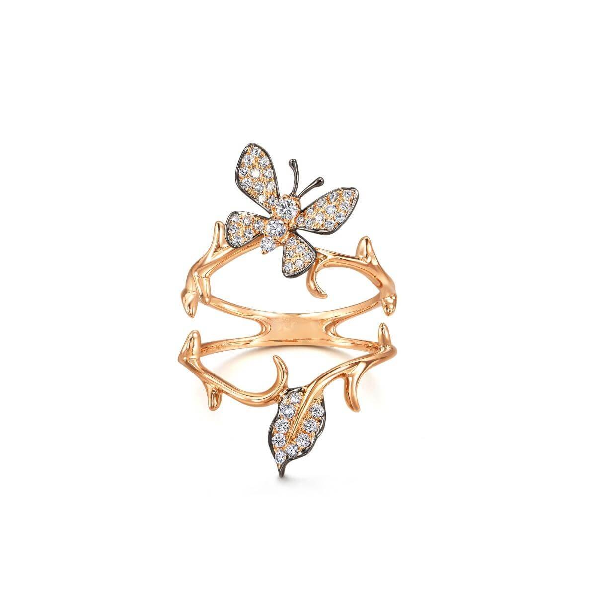 Based in Hong Kong, Emphasis shares a fresh take on fine jewelry with a focus on everyday elegance. Combining innovative designs, precious materials and superior craftsmanship, Emphasis creates pieces expressing multifaceted beauty. Believing well-designed jewelry is all about unique details, every piece by Emphasis will draw you in for a closer look. Emphasis also collaborates with talented designers to create jewelry collections that will surprise and delight.Style notes: The diamond-set butterfly flutters its wings on the lively garland of leaves and stems on this ring. Black rhodium finishing accentuates the contours of the butterfly's wings and leaves, bringing the piece to life.Price: Please note price may vary due to exchange rate differences or shipping, duties and taxes. Price may also vary with materials choice. Final price is calculated at checkout at the designer's website. Materials: 18k gold with round brilliant diamonds, total carat weight 0.31 ct.