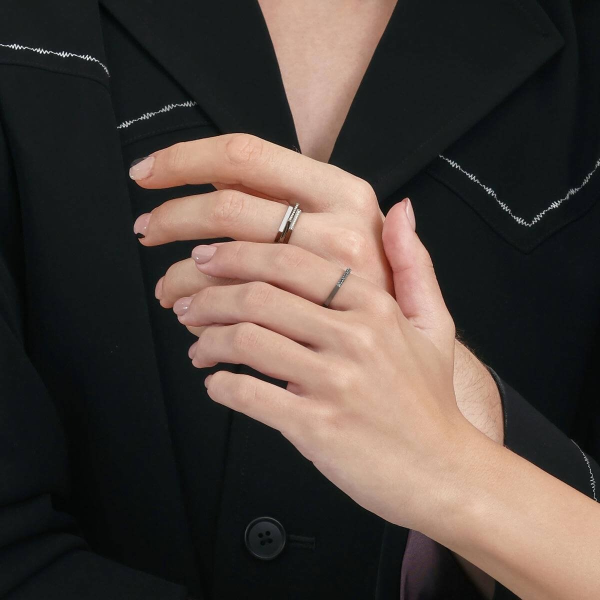 M 18K Black Gold Diamond Ring