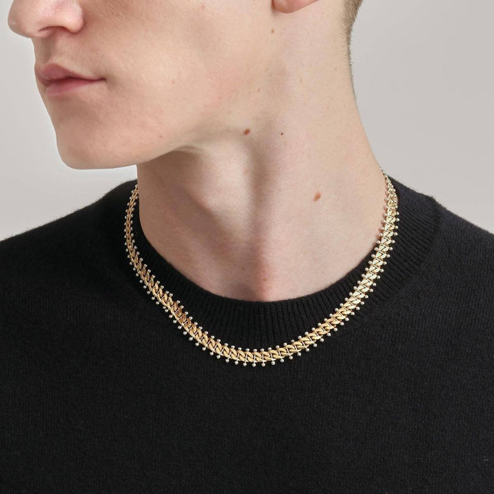 Based in Hong Kong, Emphasis shares a fresh take on fine jewelry with a focus on everyday elegance. Combining innovative designs, precious materials and superior craftsmanship, Emphasis creates pieces expressing multifaceted beauty. Believing well-designed jewelry is all about unique details, every piece by Emphasis will draw you in for a closer look. Emphasis also collaborates with talented designers to create jewelry collections that will surprise and delight.Style notes: Part of the ANAÃS JOURDEN x EMPHASIS collaboration, this 9mm wide 18K gold curb link necklace is crafted with an irregular pattern of yellow gold and diamond links. Intricate miniature barbells are hand-fitted through each link, which are then meticulously connected by hand. The flexible and smooth design also allows the necklace to be twisted and worn as a choker, creating two distinct styles.Price: Please note price may vary due to exchange rate differences or shipping, duties and taxes. Price may also vary with materials choice. Final price is calculated at checkout at the designer's website. Materials: 18k gold with round brilliant diamonds, total carat weight 0.08 ct
