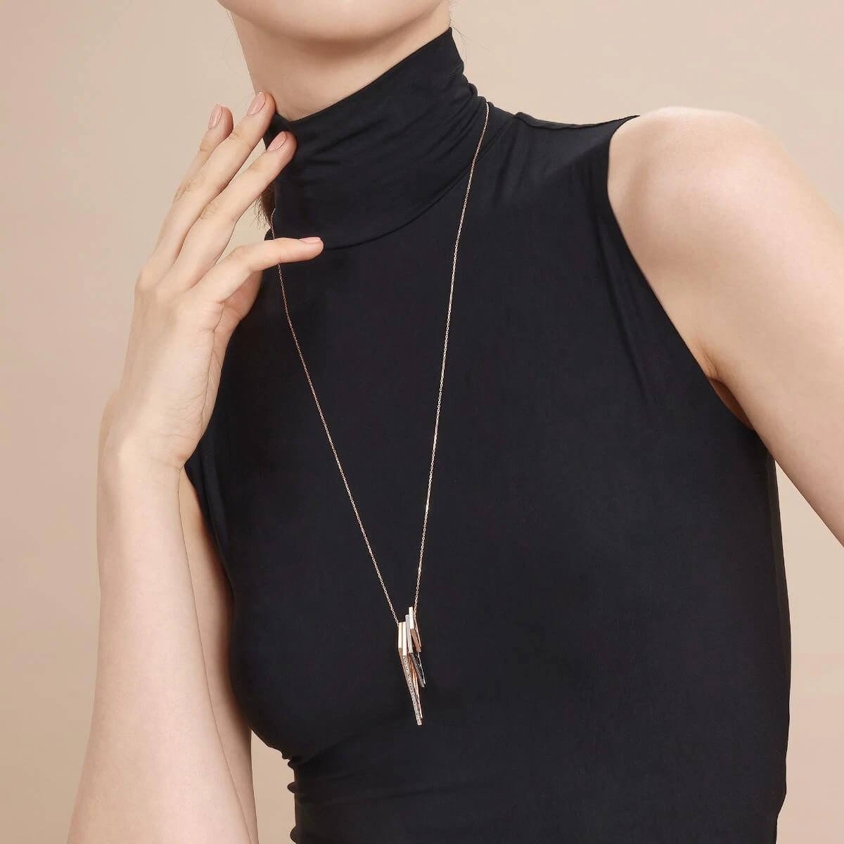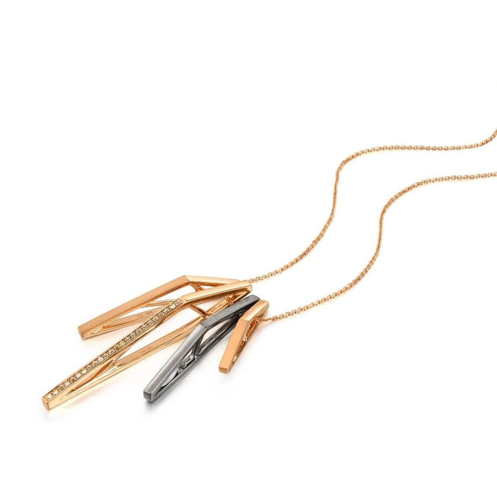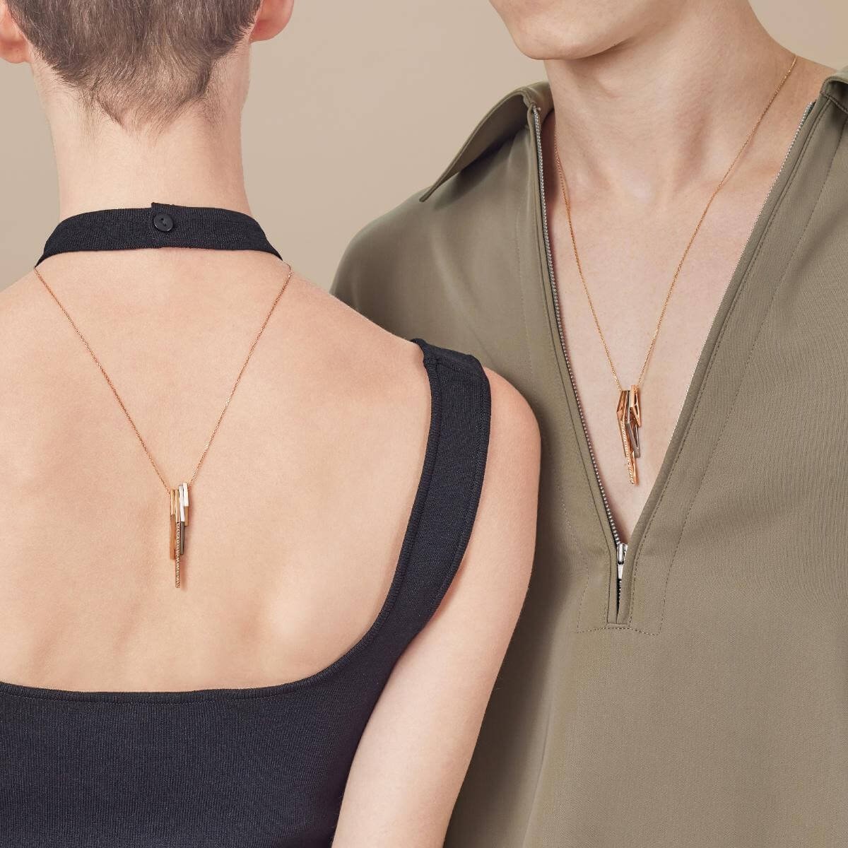 Based in Hong Kong, Emphasis shares a fresh take on fine jewelry with a focus on everyday elegance. Combining innovative designs, precious materials and superior craftsmanship, Emphasis creates pieces expressing multifaceted beauty. Believing well-designed jewelry is all about unique details, every piece by Emphasis will draw you in for a closer look. Emphasis also collaborates with talented designers to create jewelry collections that will surprise and delight.Style notes: Deconstructing and reconstructing the brand logo “M', the neat design is blended with angling geometric flair. This 18K rose and black gold necklace is adorned with ravishing diamonds, it crowns women's multi-faceted versatility with immeasurable honour.Price: Please note price may vary due to exchange rate differences or shipping, duties and taxes. Price may also vary with materials choice. Final price is calculated at checkout at the designer's website. Materials: 18k gold with round brilliant brown diamonds, total carat weight 0.2 ctDimensions: Adjustable length : 70 to 75 cm