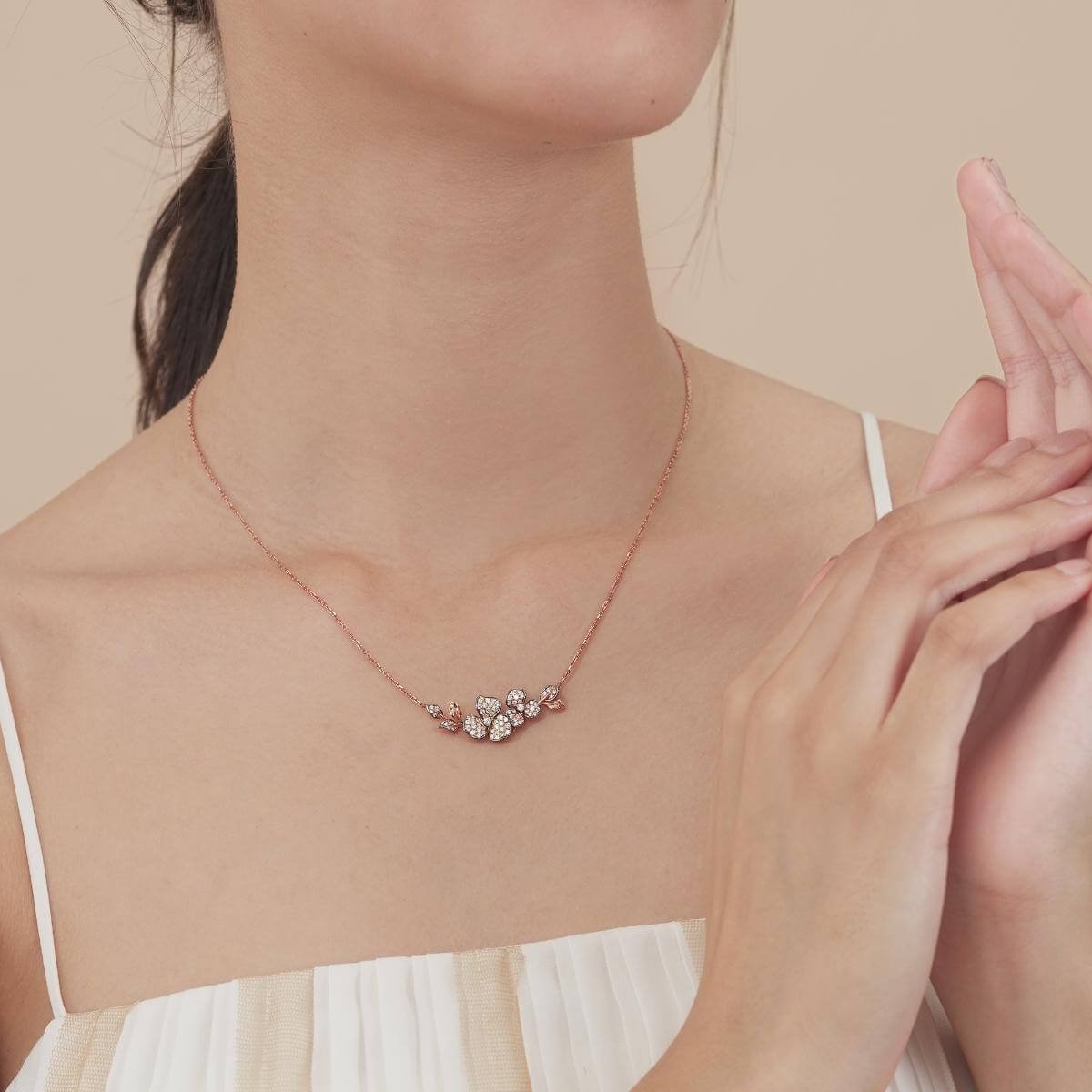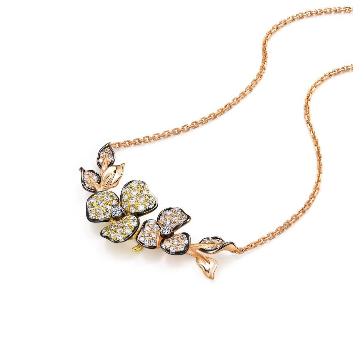 Based in Hong Kong, Emphasis shares a fresh take on fine jewelry with a focus on everyday elegance. Combining innovative designs, precious materials and superior craftsmanship, Emphasis creates pieces expressing multifaceted beauty. Believing well-designed jewelry is all about unique details, every piece by Emphasis will draw you in for a closer look. Emphasis also collaborates with talented designers to create jewelry collections that will surprise and delight.Style notes: The diamond-set pansy unfurls its full beauty with lively leaves on this necklace. Black rhodium finishing accentuates the contours of the flower and leaves, bringing the piece to life. Pansy represents everlasting admirationPrice: Please note price may vary due to exchange rate differences or shipping, duties and taxes. Price may also vary with materials choice. Final price is calculated at checkout at the designer's website. Materials: 18k gold with round brilliant diamonds, total carat weight 0.52 ctDimensions: Adjustable length : 42 to 47 cm