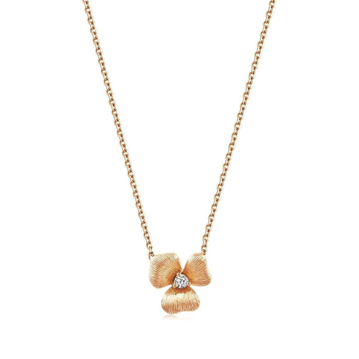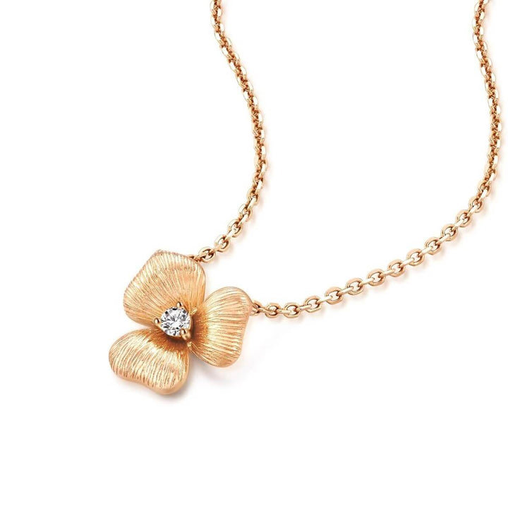 Based in Hong Kong, Emphasis shares a fresh take on fine jewelry with a focus on everyday elegance. Combining innovative designs, precious materials and superior craftsmanship, Emphasis creates pieces expressing multifaceted beauty. Believing well-designed jewelry is all about unique details, every piece by Emphasis will draw you in for a closer look. Emphasis also collaborates with talented designers to create jewelry collections that will surprise and delight.Style notes: The pansy unfurls its full beauty on this necklace, enlivening it with radiant contours. 18K rose gold petals in brushed texture foreground the dazzling central diamond, glowing and bringing the piece to life Pansy represents everlasting admirationPrice: Please note price may vary due to exchange rate differences or shipping, duties and taxes. Price may also vary with materials choice. Final price is calculated at checkout at the designer's website. Materials: 18k gold with round brilliant diamond, total carat weight 0.01 ctDimensions: Adjustable length : 37 to 42 cm