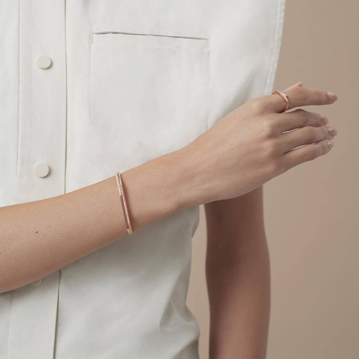 Based in Hong Kong, Emphasis shares a fresh take on fine jewelry with a focus on everyday elegance. Combining innovative designs, precious materials and superior craftsmanship, Emphasis creates pieces expressing multifaceted beauty. Believing well-designed jewelry is all about unique details, every piece by Emphasis will draw you in for a closer look. Emphasis also collaborates with talented designers to create jewelry collections that will surprise and delight.Style notes: Deconstructing and reconstructing the brand logo “M', the neat design is blended with angling geometric flair. This 18K rose gold bracelet is adorned with ravishing diamonds, it crowns everyone's multi-faceted versatility by mixing & stacking bracelet spontaneously.Price: Please note price may vary due to exchange rate differences or shipping, duties and taxes. Price may also vary with materials choice. Final price is calculated at checkout at the designer's website. Materials: 18k gold with round brilliant diamonds, total carat weight 0.33 ct