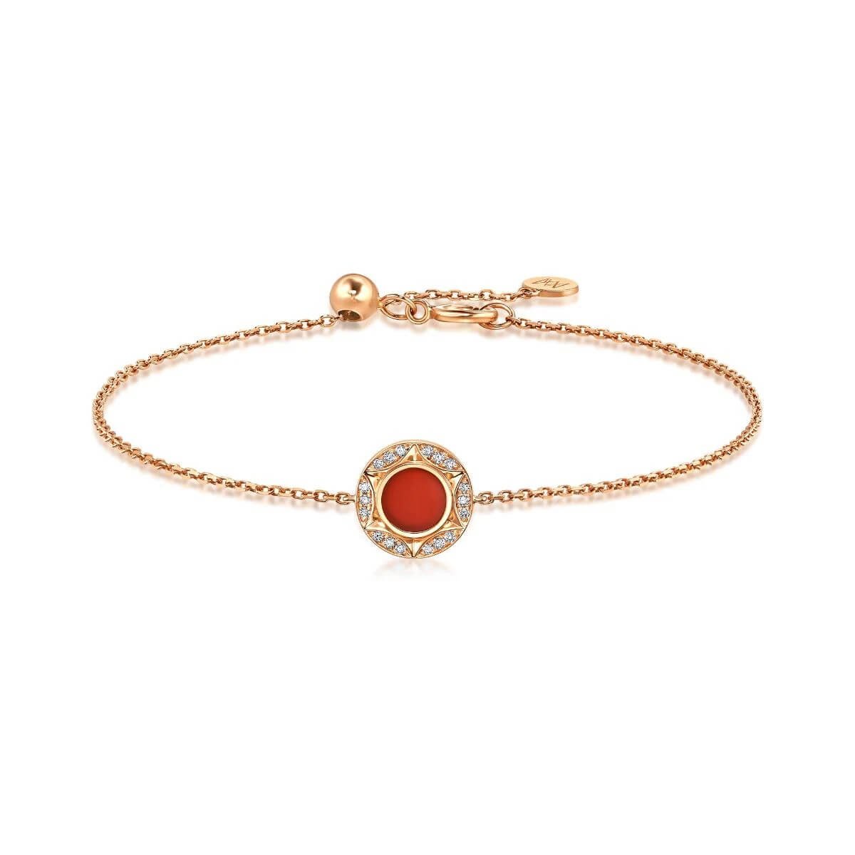 Based in Hong Kong, Emphasis shares a fresh take on fine jewelry with a focus on everyday elegance. Combining innovative designs, precious materials and superior craftsmanship, Emphasis creates pieces expressing multifaceted beauty. Believing well-designed jewelry is all about unique details, every piece by Emphasis will draw you in for a closer look. Emphasis also collaborates with talented designers to create jewelry collections that will surprise and delight.Style notes: Also featuring a lucky six-pointed star motif outlined by dazzling diamonds, this 18K rose gold chalcedony bracelet embellishes a carnelian that represents joy, health and happiness. The stunning design can be worn in reverse, allowing more flexibility in styling. The warm hues of carnelian brighten up the versatile piece suitable for any occasion.Price: Please note price may vary due to exchange rate differences or shipping, duties and taxes. Price may also vary with materials choice. Final price is calculated at checkout at the designer's website. Materials: 18k gold with round brilliant diamonds, total carat weight 0.05 ct and chalcedonyDimensions: Length : 18 cm (adjustable)