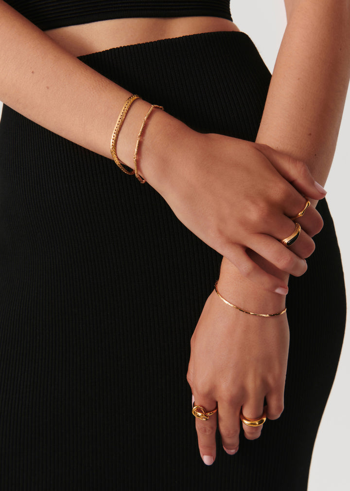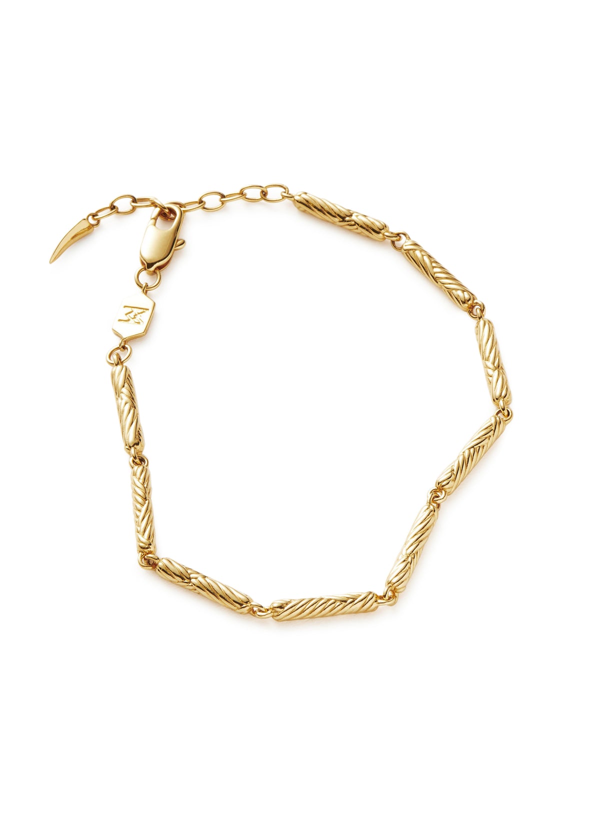 This Wavy Ridge 18kt gold-plated bracelet by Missoma showcases a sleek, twisted ridged tube-link design, reflecting Missoma's dedication to modern luxury and versatility. Complete with a designer tag and an adjustable lobster-clasp, this piece is a chic addition for stacking or standalone wear.