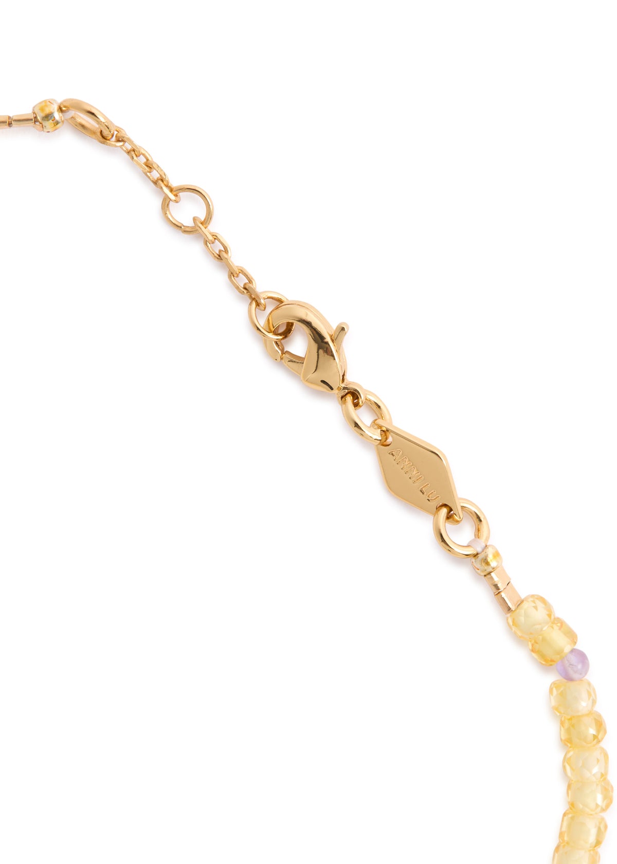 Zircon and amethyst beads with 18kt gold-plated hardware and designer tag. Adjustable lobster-clasp fastening. Length: 18cm. Presented in a designer-stamped box.