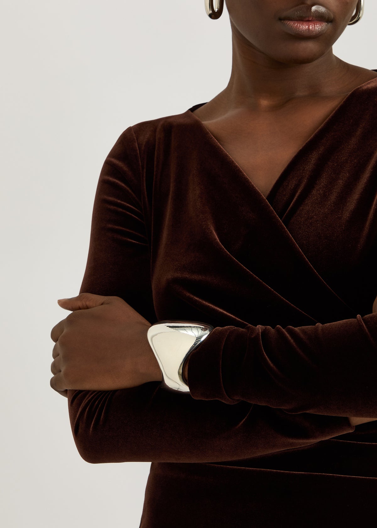 This Giselle sterling silver cuff by AGMES reflects the brand's minimalist, sculptural approach, drawing inspiration from art and nature. With its bold yet refined design, this cuff is a timeless piece that stands out for its contemporary elegance.