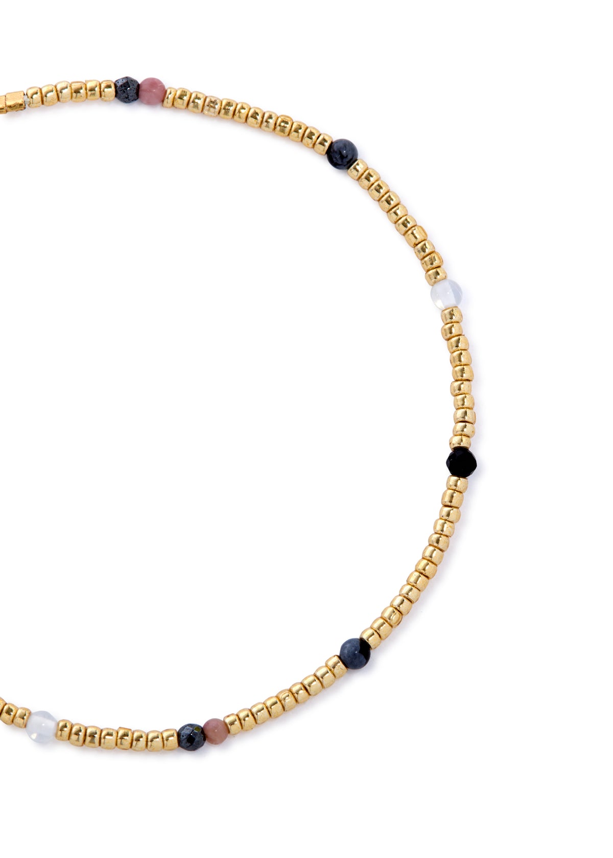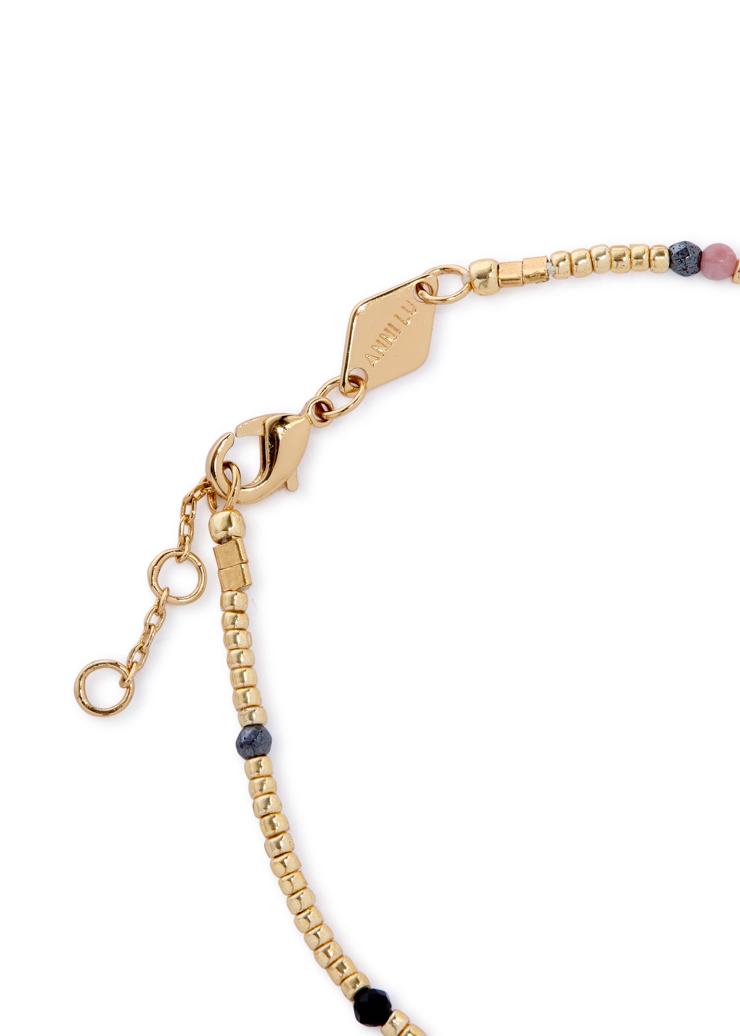 Handmade with semi-precious gemstone embellishments, 18kt gold-plated hardware, and designer tag. Adjustable lobster-clasp fastening. Length: 18cm. Presented in a designer-stamped box.