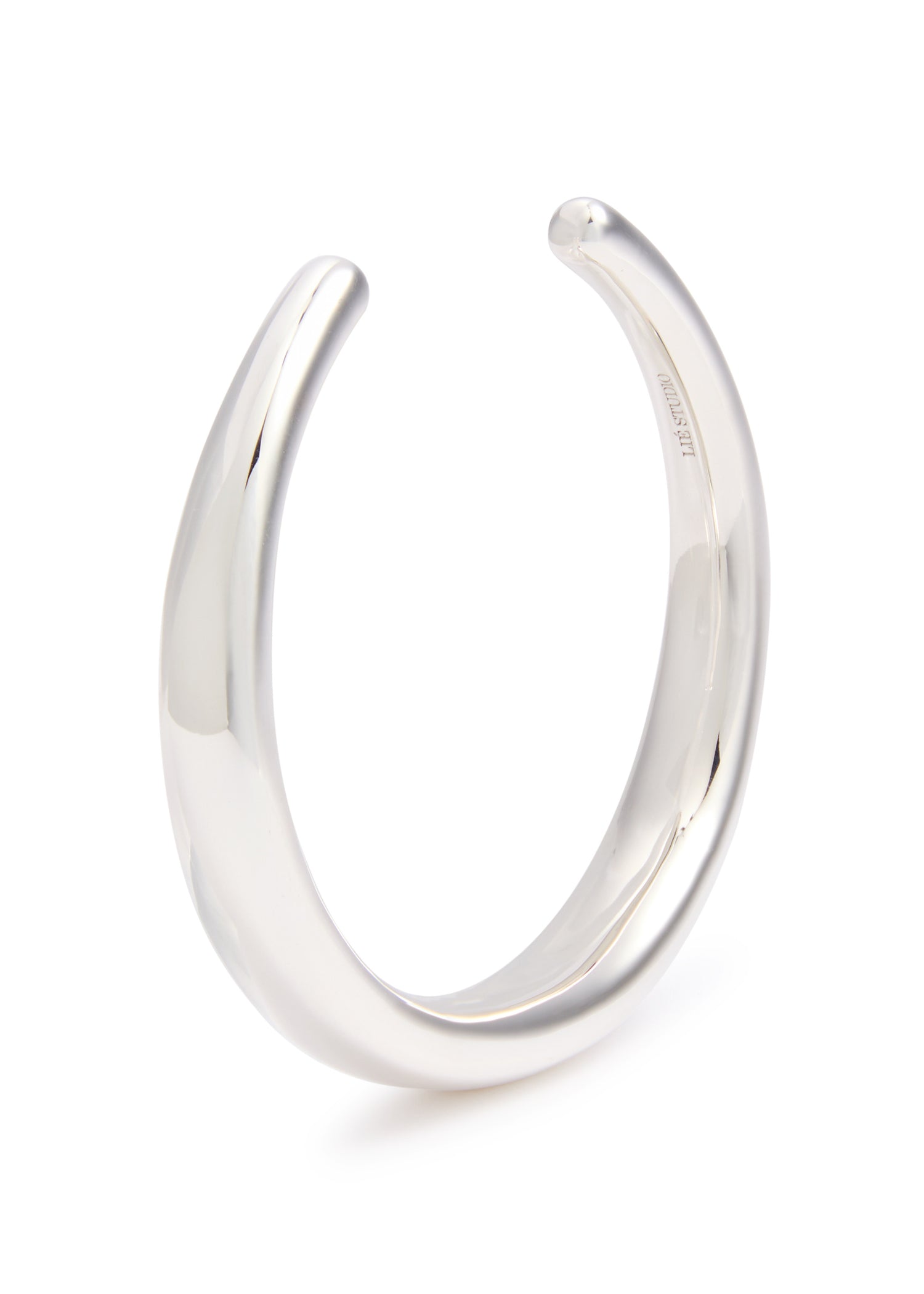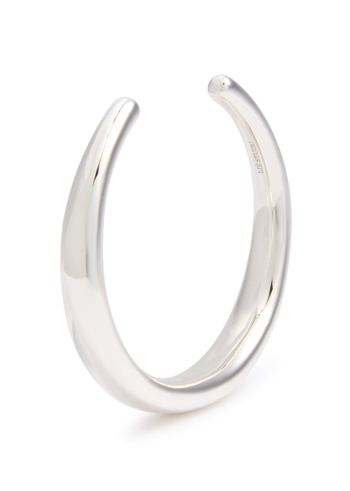 The Amanda Sterling Silver Cuff by Lie Studio combines minimalist design with refined craftsmanship. This cuff features a slender, clean silhouette with an internal designer engraving, ideal for those who appreciate versatile, modern accessories.