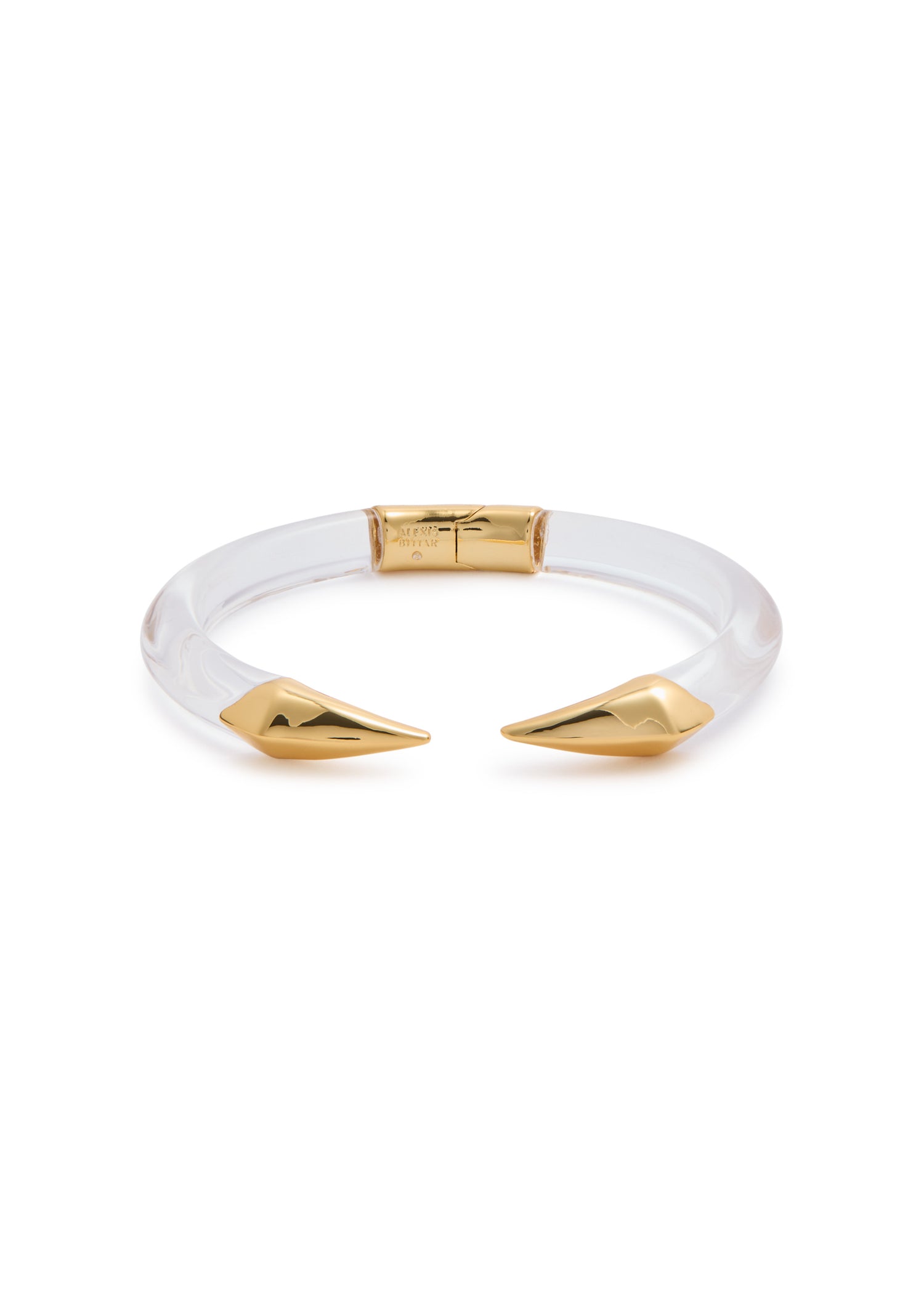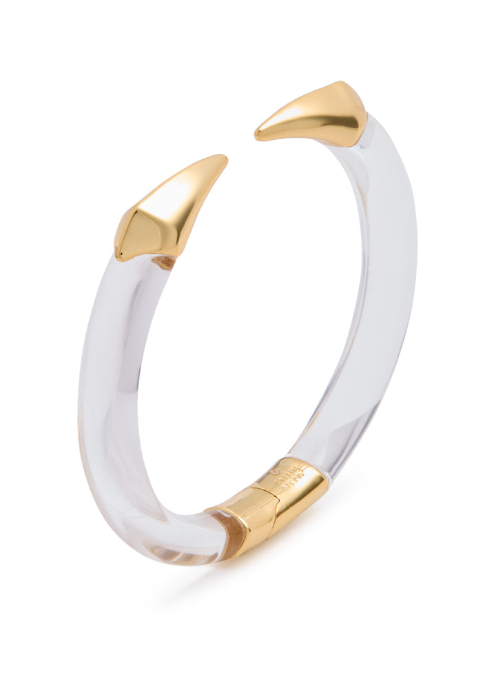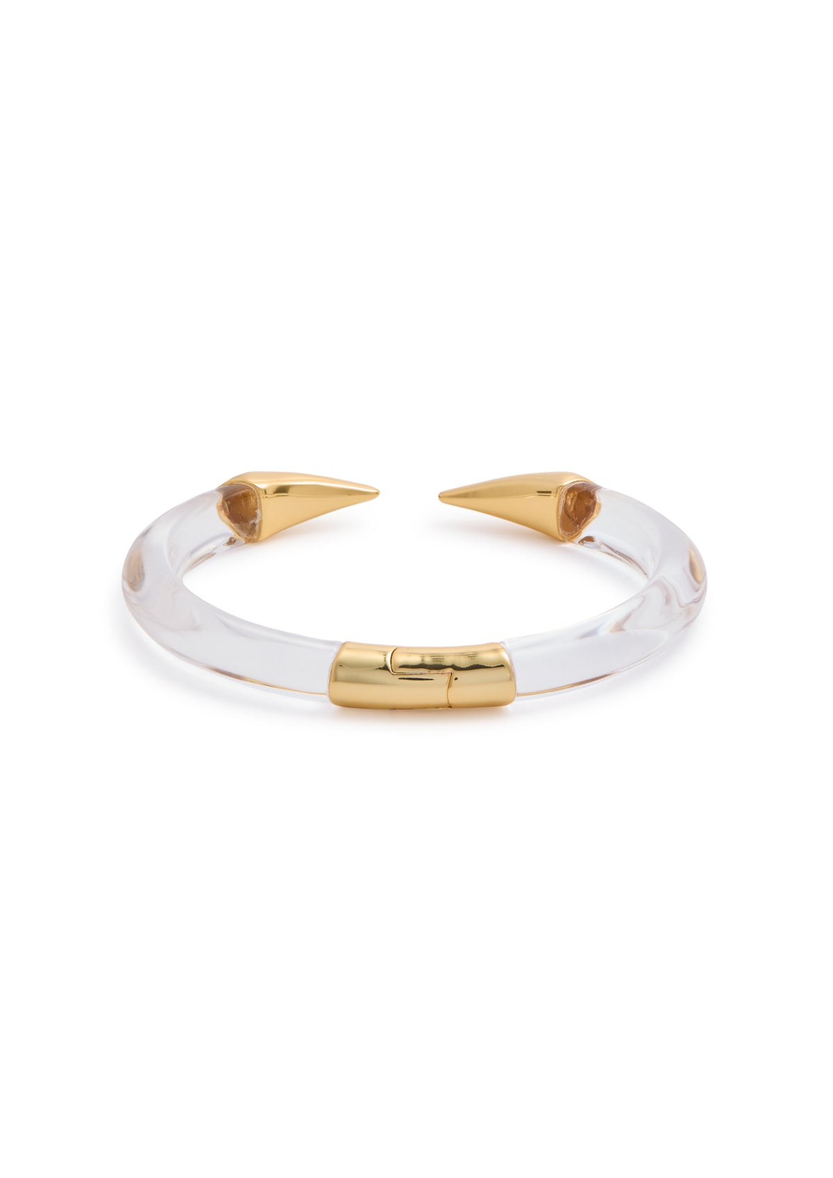Lucite with 14kt gold-plated pointed metal tips, designer engraved. Magnetic push-clasp fastening. Inner circumference: 17cm, Width of band: 1cm. Presented in a designer-stamped pouch.