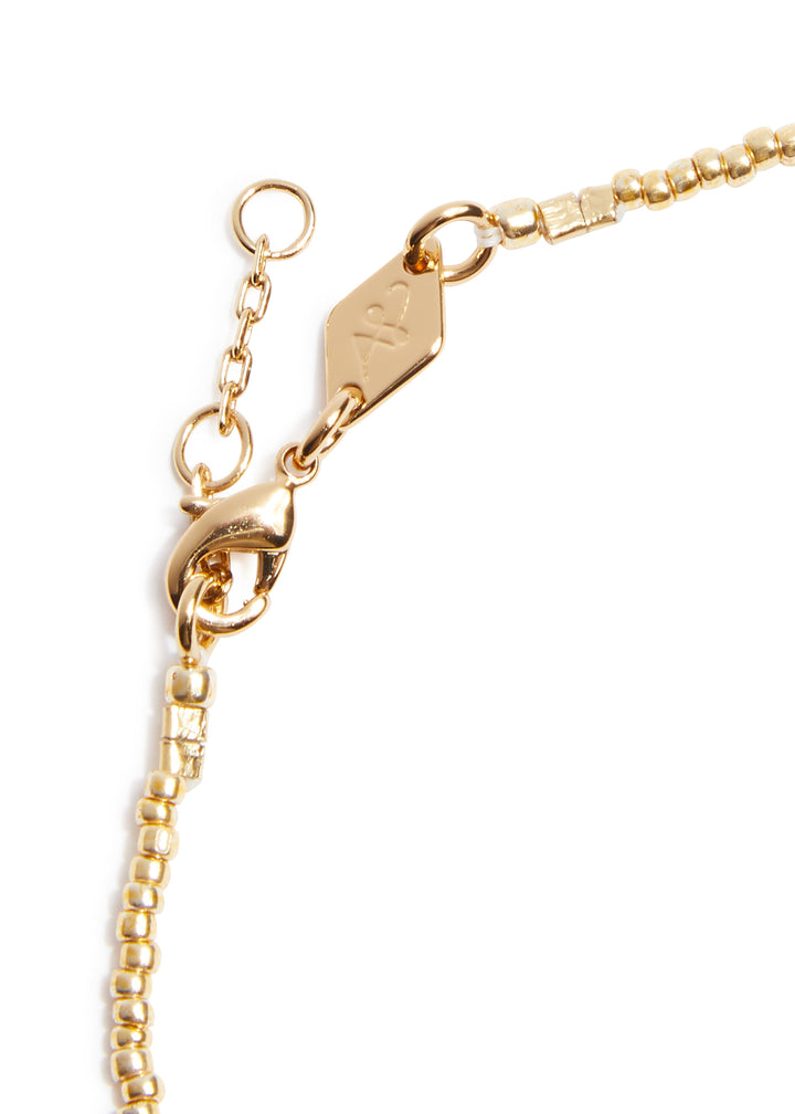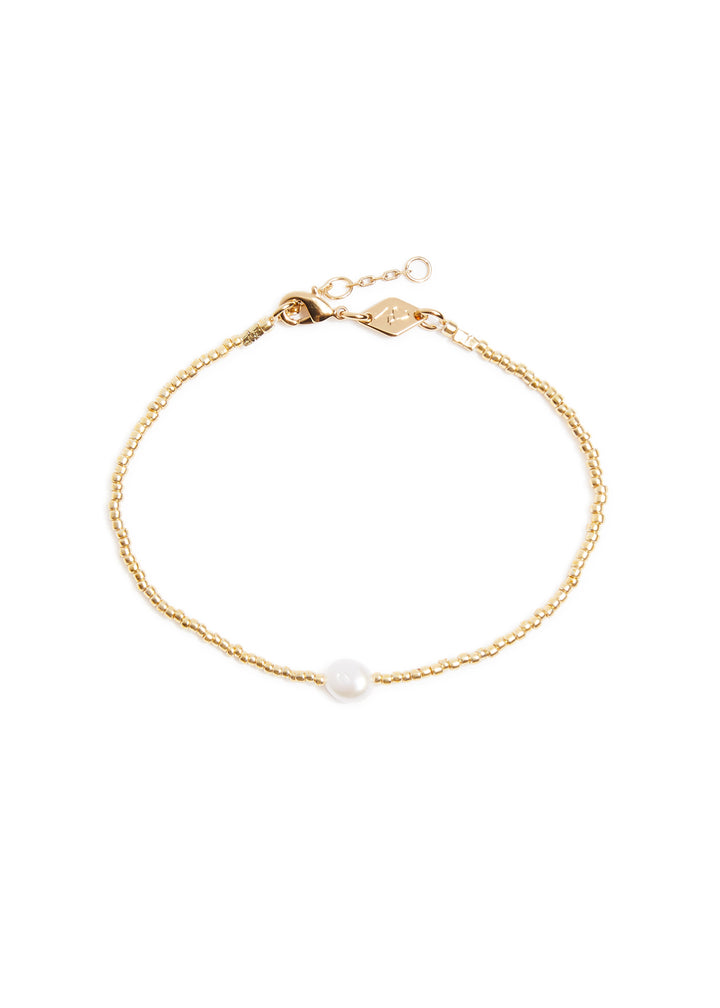 This Pearly 18kt gold-plated beaded bracelet by Anni Lu showcases the brand’s delicate, bohemian aesthetic. Featuring vibrant glass beads and a freshwater nugget pearl, this piece captures an effortless, beach-inspired elegance, perfect for layering and everyday wear.