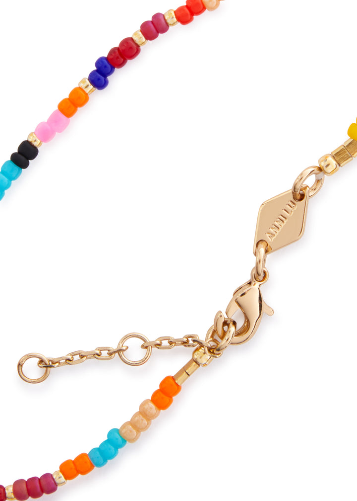 Crafted in 18kt gold-plated metal with glass bead embellishments. Adjustable lobster clasp. Length: 16-18 cm.