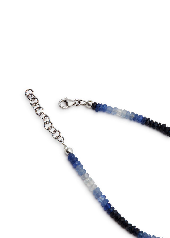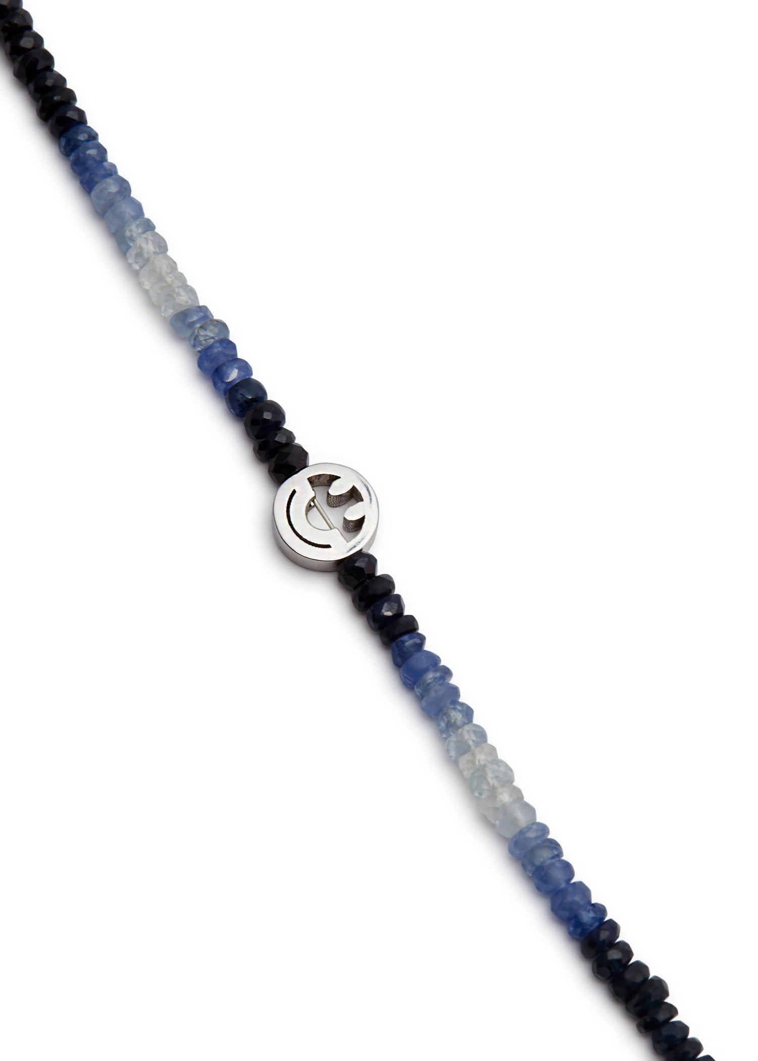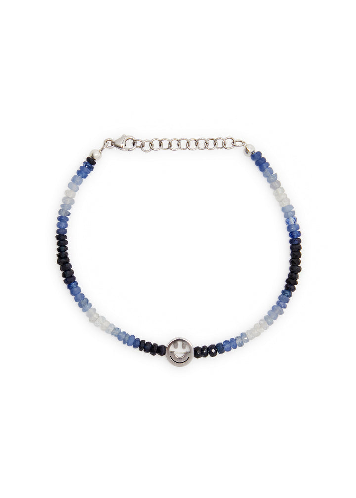 Composed of sapphire beads with 9kt gold or white gold hardware, featuring a Happy Face charm. Adjustable lobster clasp. Length: 19 cm.