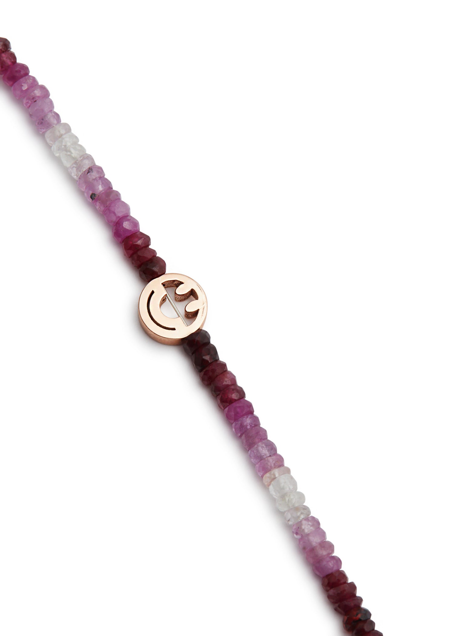 This Smiley sapphire beaded bracelet by Roxanne First adds a cheerful element to everyday wear with its Happy Face charm and sapphire beads. Designed with either 9kt gold or white gold hardware, this bracelet reflects Roxanne First’s playful style, ideal for stacking or wearing solo.