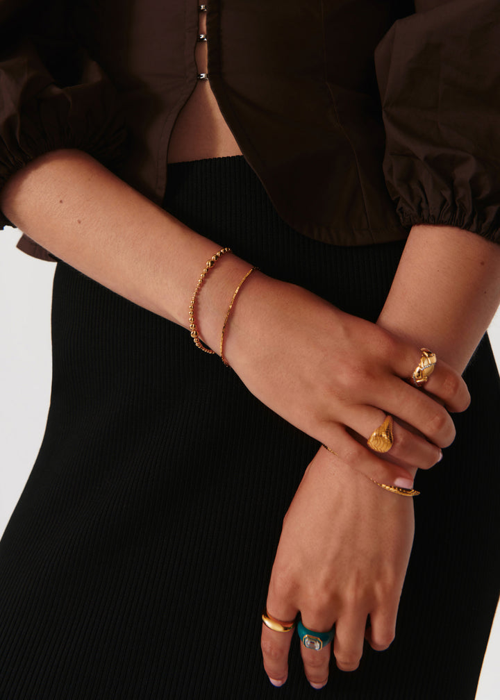 This Articulated 18kt gold vermeil bracelet by Missoma showcases a modern beaded design that captures the brand’s understated luxury and layering potential. Perfect for adding texture to any ensemble, this bracelet reflects Missoma's commitment to quality and sustainability.
