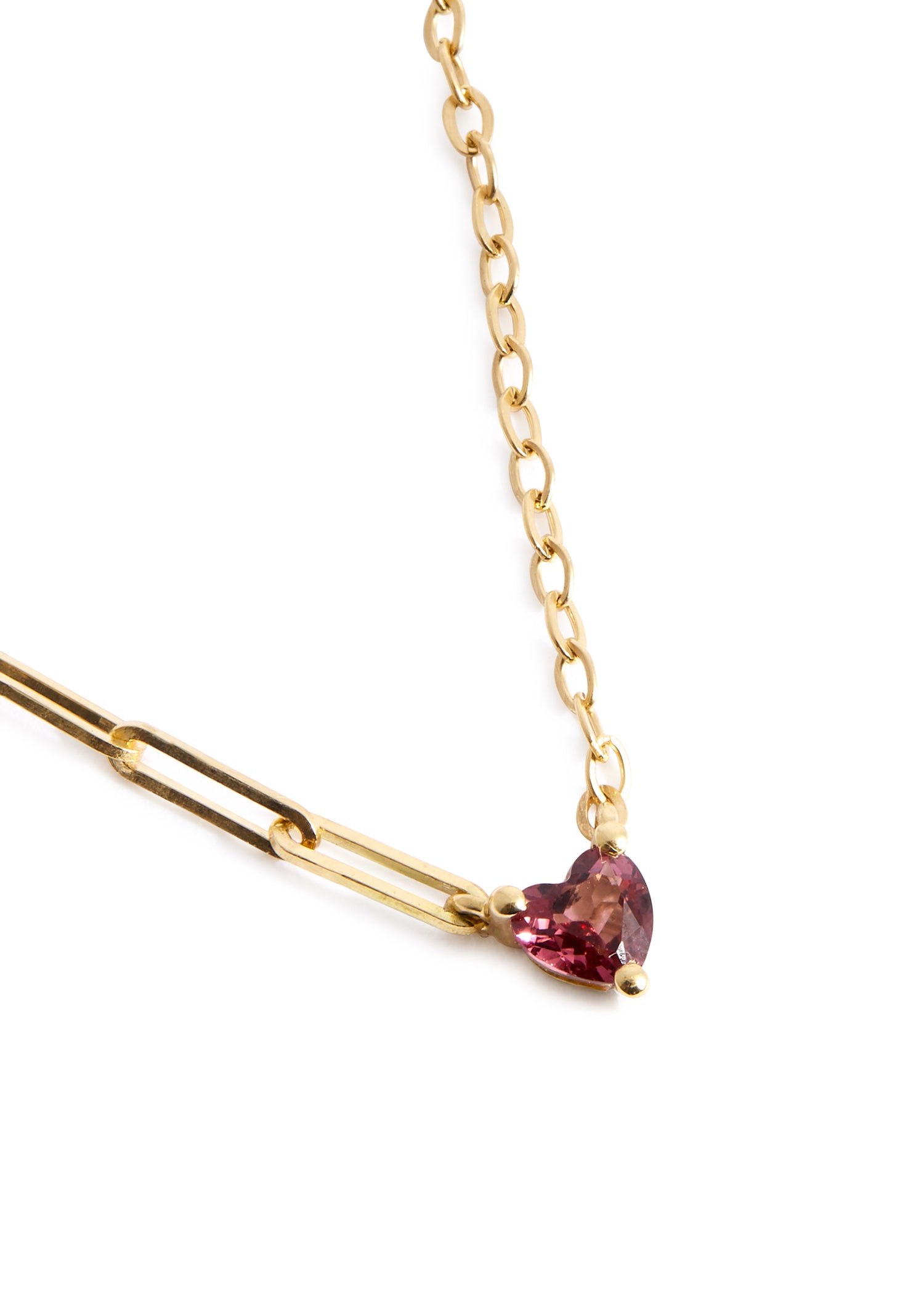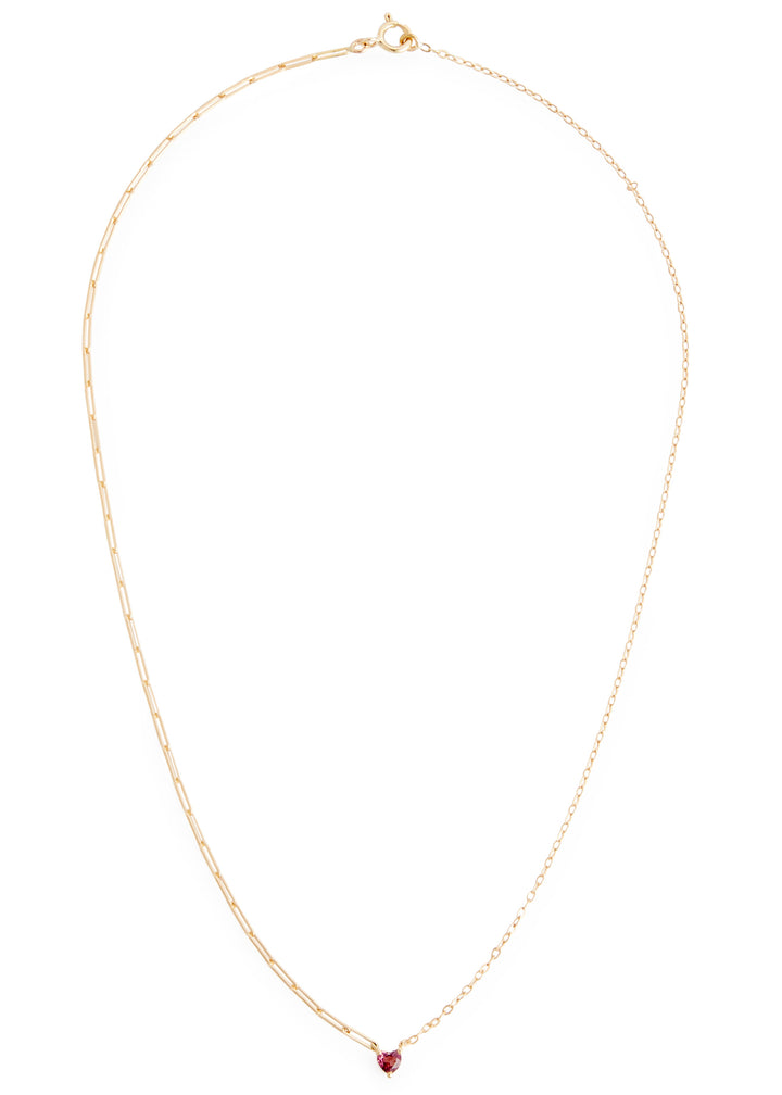 Crafted in 18kt gold with a rhodolite heart charm (approx. 0.25 carats). Clasp fastening. Chain length: 42 cm. Presented in a designer-stamped box.