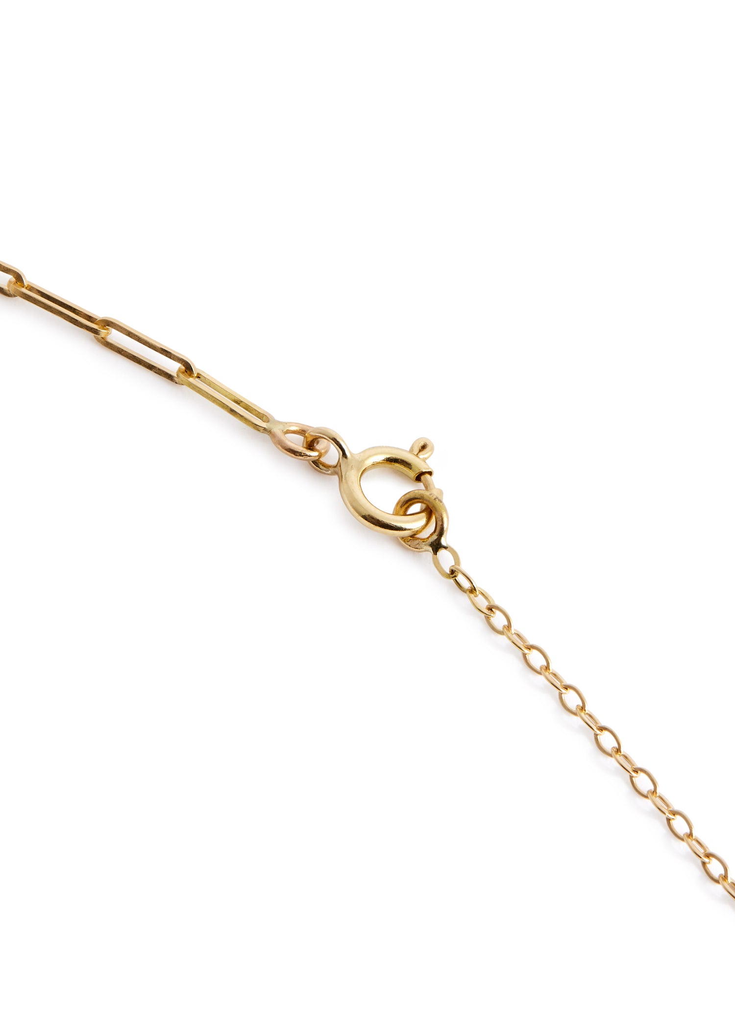 This Collier Solitaire Coeur 18kt gold necklace by Yvonne Léon offers an eclectic touch with its contrasting chain and rhodolite heart charm. Embodying the designer’s playful yet luxurious style, this necklace is ideal for those who appreciate a unique blend of vintage-inspired and modern aesthetics.