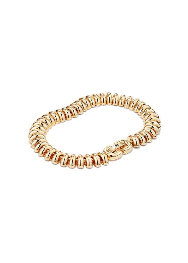This Sofia Gold-Dipped Bracelet by Jenny Bird combines a sleek, ribbed chain link design with a contemporary elegance, making it versatile for both daily wear and special occasions. Known for its sculptural quality, this piece embodies Jenny Bird’s approach to modern statement jewelry with subtle engraving, adding a refined touch to any ensemble.