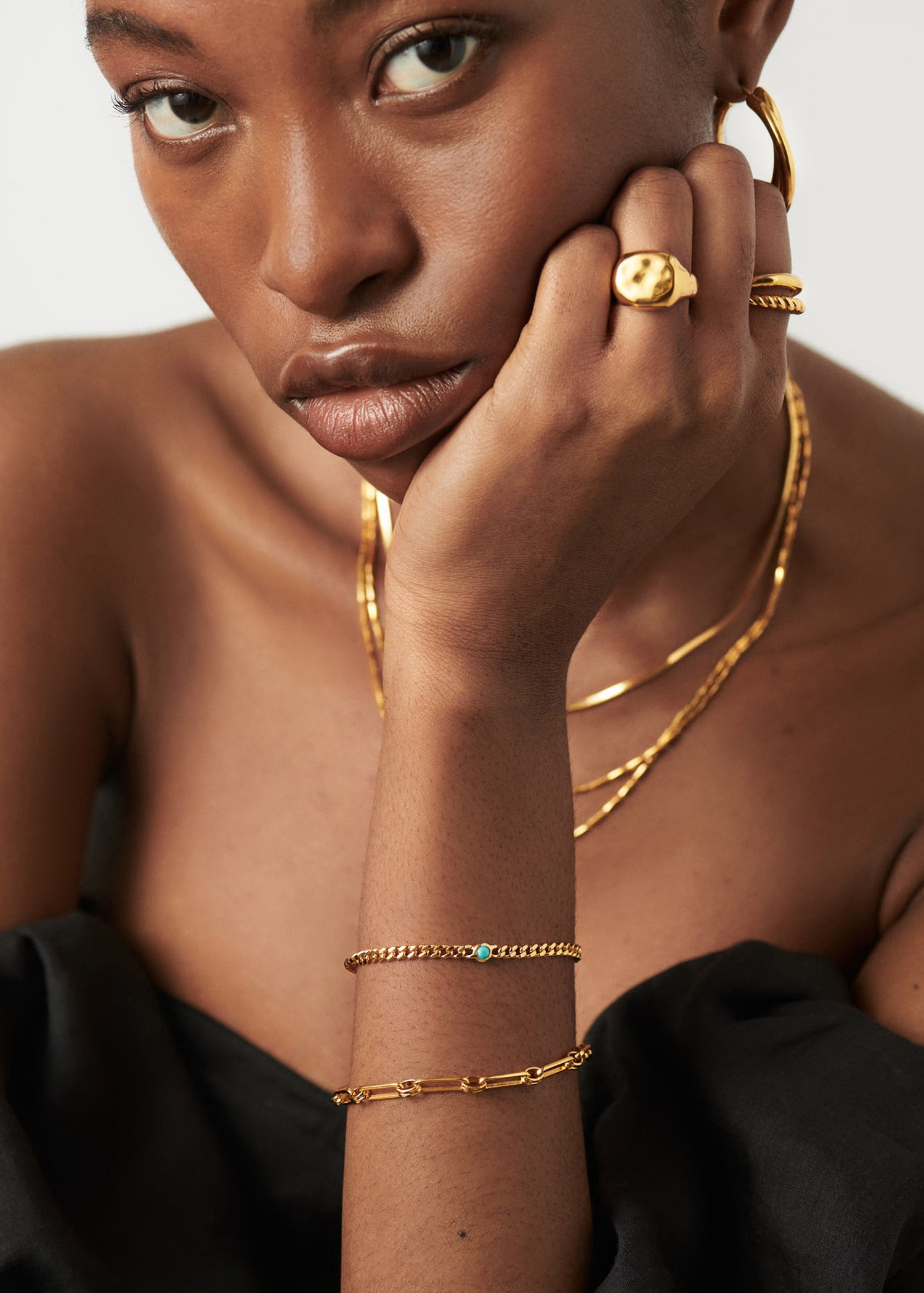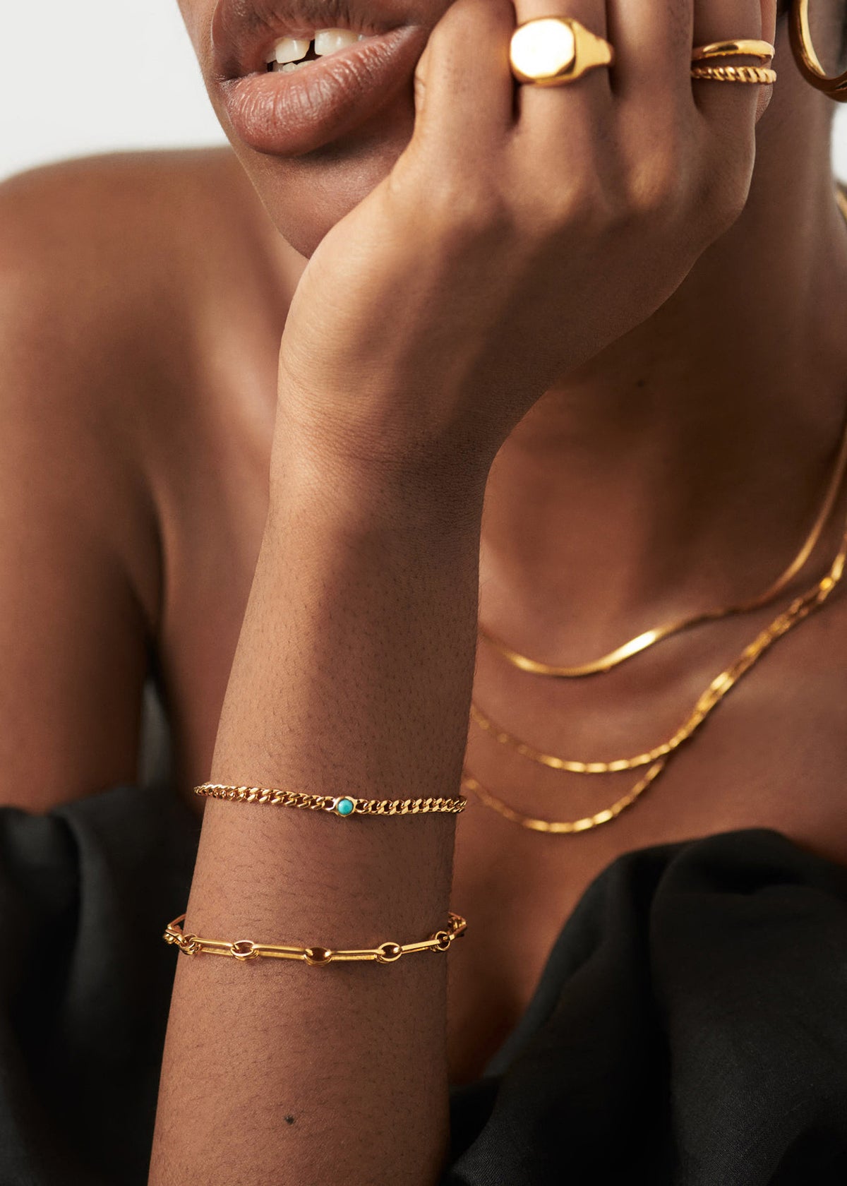 This December Birthstone 18kt Gold Vermeil Bracelet by Missoma is delicately adorned with turquoise, a stone known for its protective qualities. Designed for daily wear or layering, this piece is a meaningful gift for those with December birthdays or anyone who loves the vibrant beauty of turquoise.