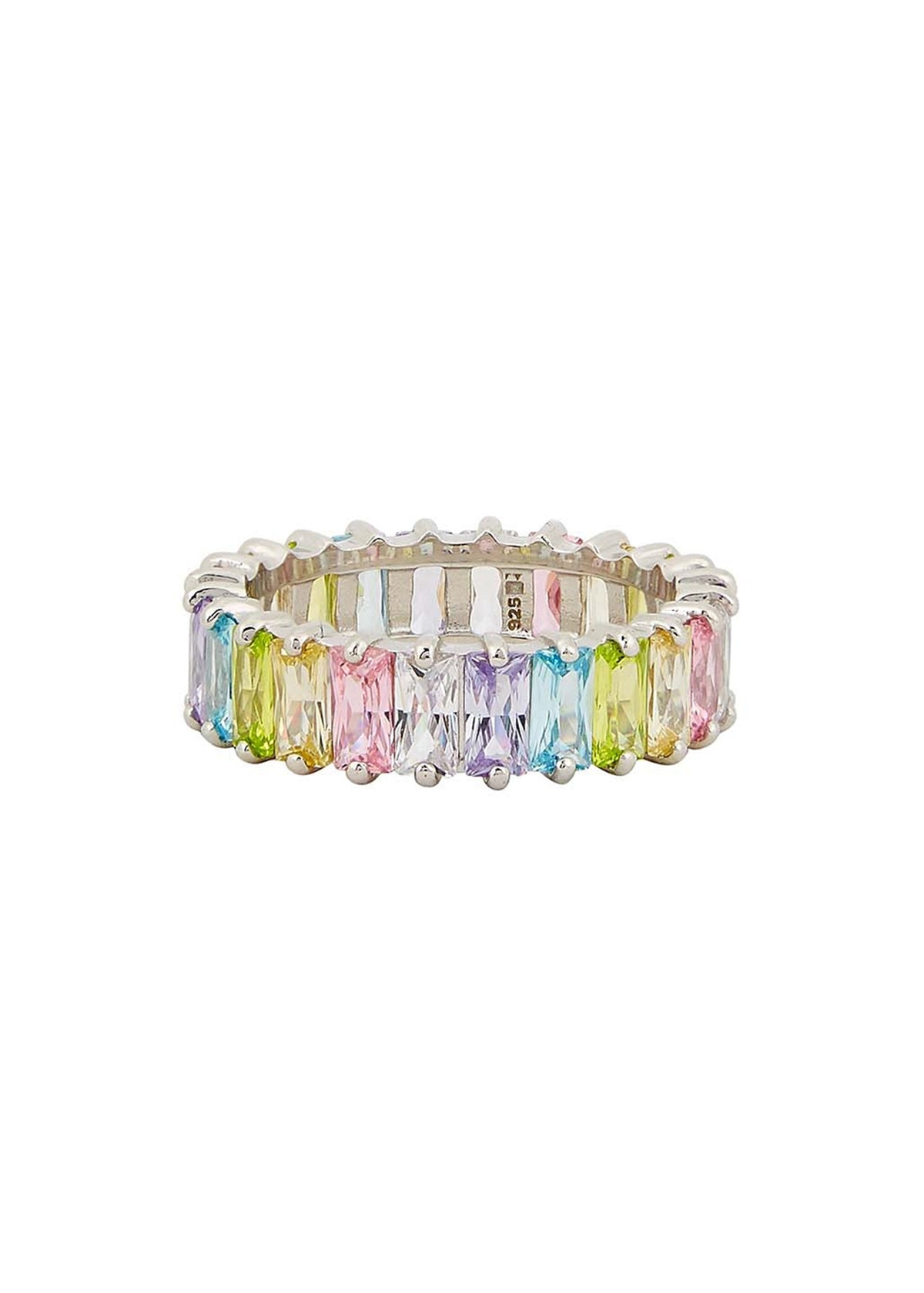 White rhodium-plated sterling silver with multicolored pastel emerald-cut cubic zirconia embellishments. Width: 0.5 cm. Presented in a designer-stamped box.