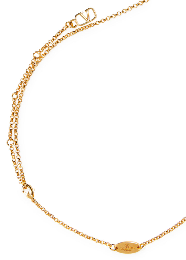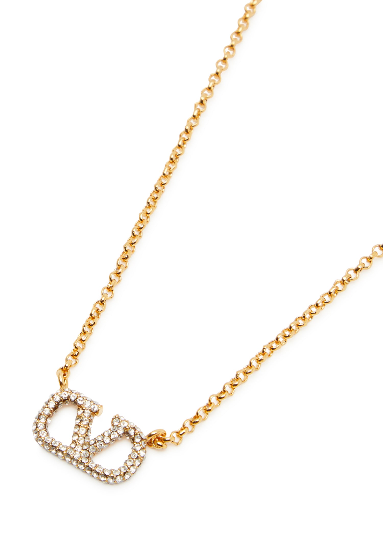 This VLogo Crystal-embellished Necklace by Valentino Garavani embodies Italian luxury with its crystal-adorned VLogo plaque, creating an elegant and bold statement. This necklace reflects Valentino’s commitment to refined craftsmanship and sophisticated design, making it a perfect accessory for those seeking timeless glamour.