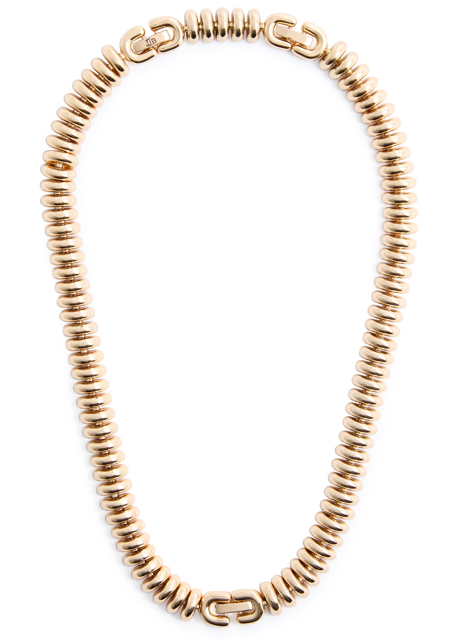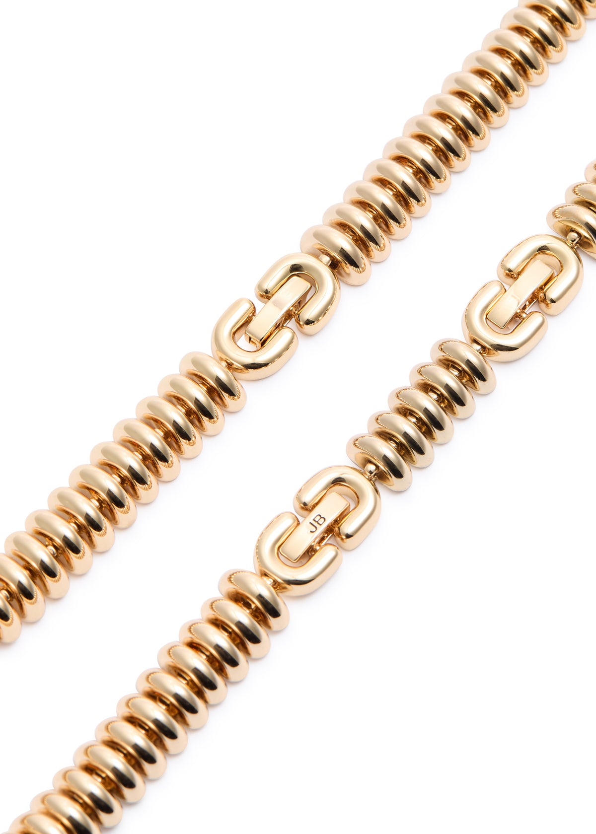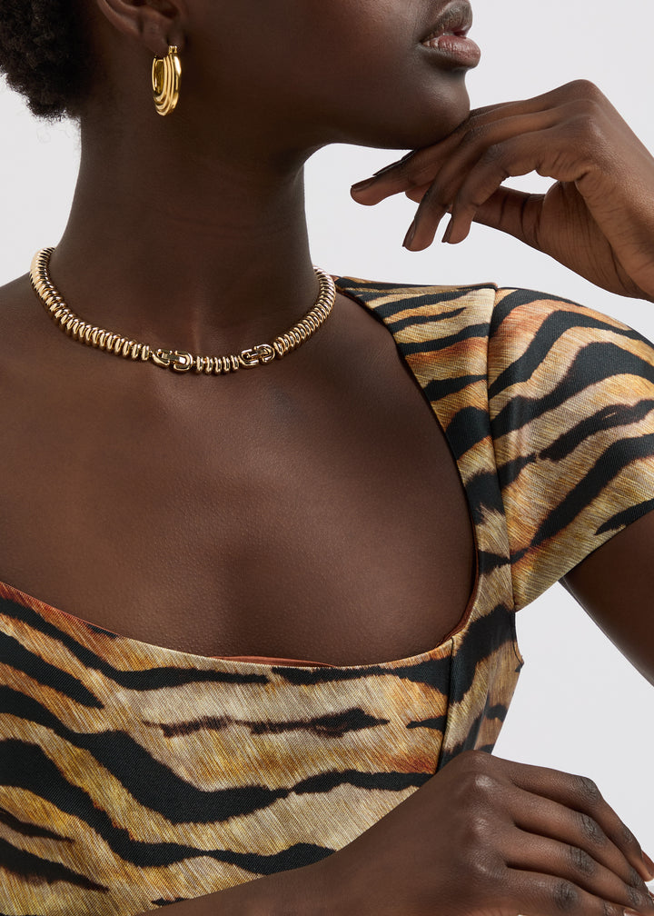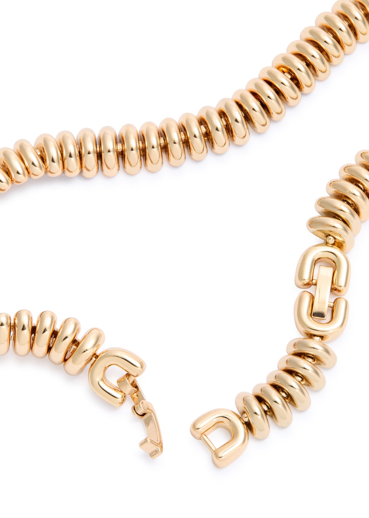 Made from high-quality metal with a ribbed linked chain and designer engraving. Includes a removable chain extender and secure push-clasp fastenings. Necklace length adjustable between 36 cm and 40 cm; can be converted into two bracelets, each 18 cm in length. Width: 1 cm.