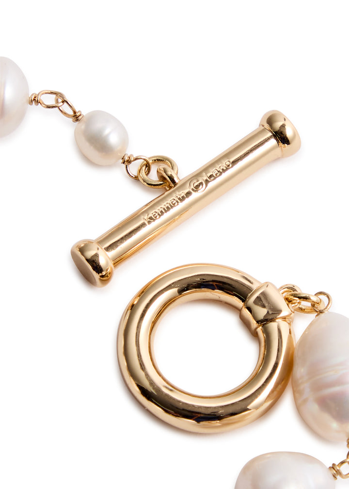 This Baroque Pearl-embellished Necklace by Kenneth Jay Lane brings a classic yet glamorous touch to any look with its lustrous baroque pearls. Embracing the designer's iconic statement style, this piece is perfect for adding sophistication and elegance to both casual and formal attire. Its timeless appeal and bold design make it ideal for those who love making a striking impression with refined jewelry.