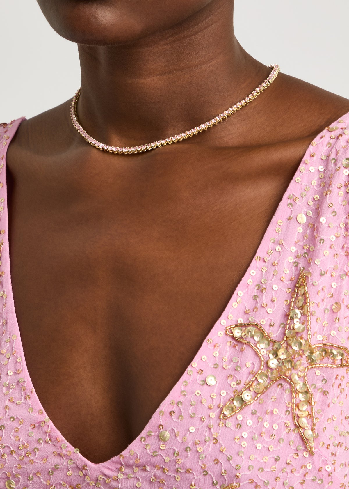 This Heart Crystal-Embellished Tennis Necklace by Cz By Kenneth Jay Lane combines classic elegance with a playful twist. The heart-shaped crystal embellishments provide a romantic flair, while the choice of 14kt gold-plated or rhodium-plated finishes adds versatility and timeless appeal. Perfect for those seeking a luxurious, red-carpet-inspired accessory.