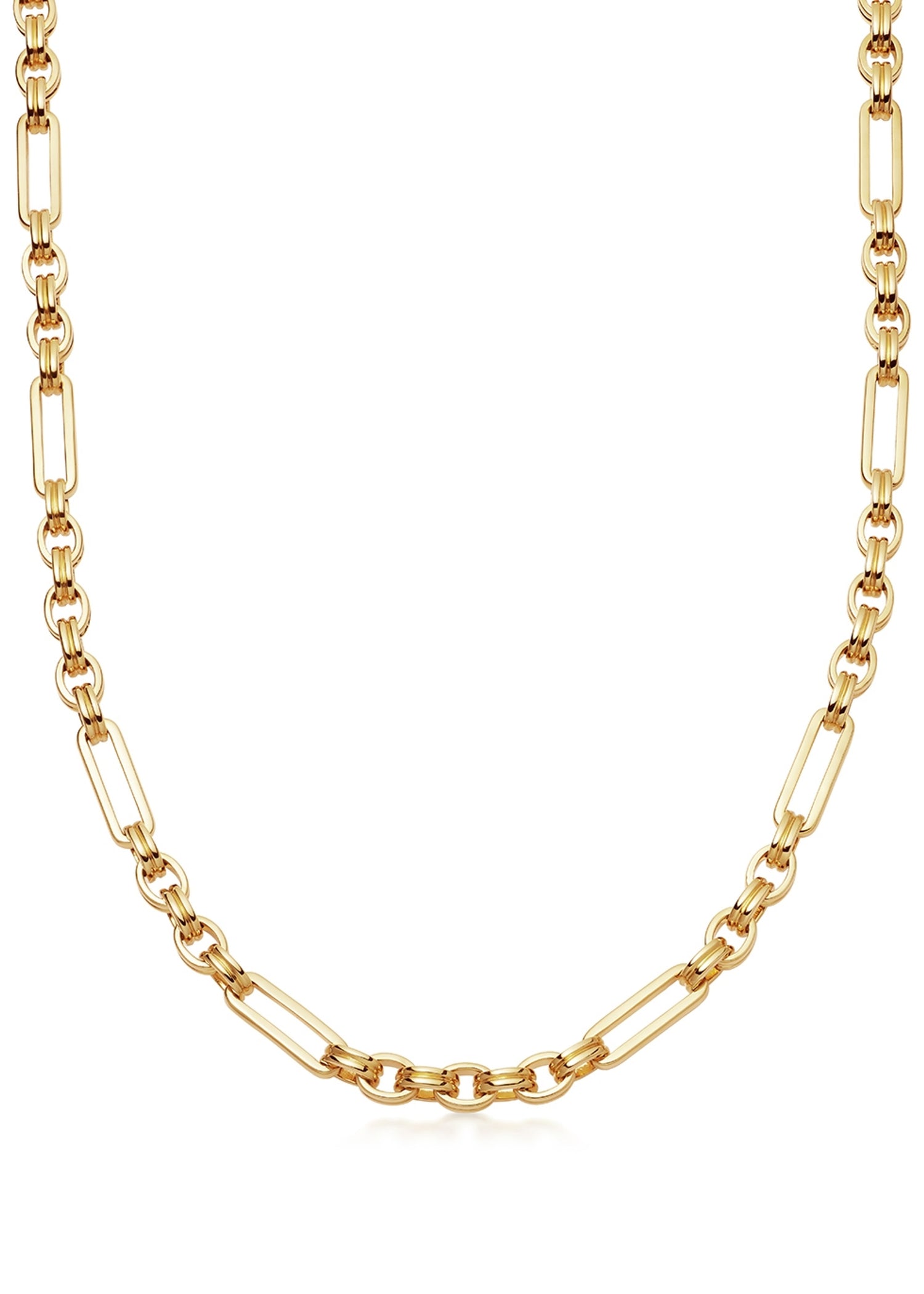 This Axiom Gold Vermeil Necklace by Missoma offers a contemporary elegance, featuring a mix of circular and rectangular links that add a unique twist to a classic chain design. Perfect for layering or as a standalone statement, this piece embodies Missoma’s ethos of accessible, everyday luxury. Ideal for those seeking a versatile accessory that pairs effortlessly with any outfit.