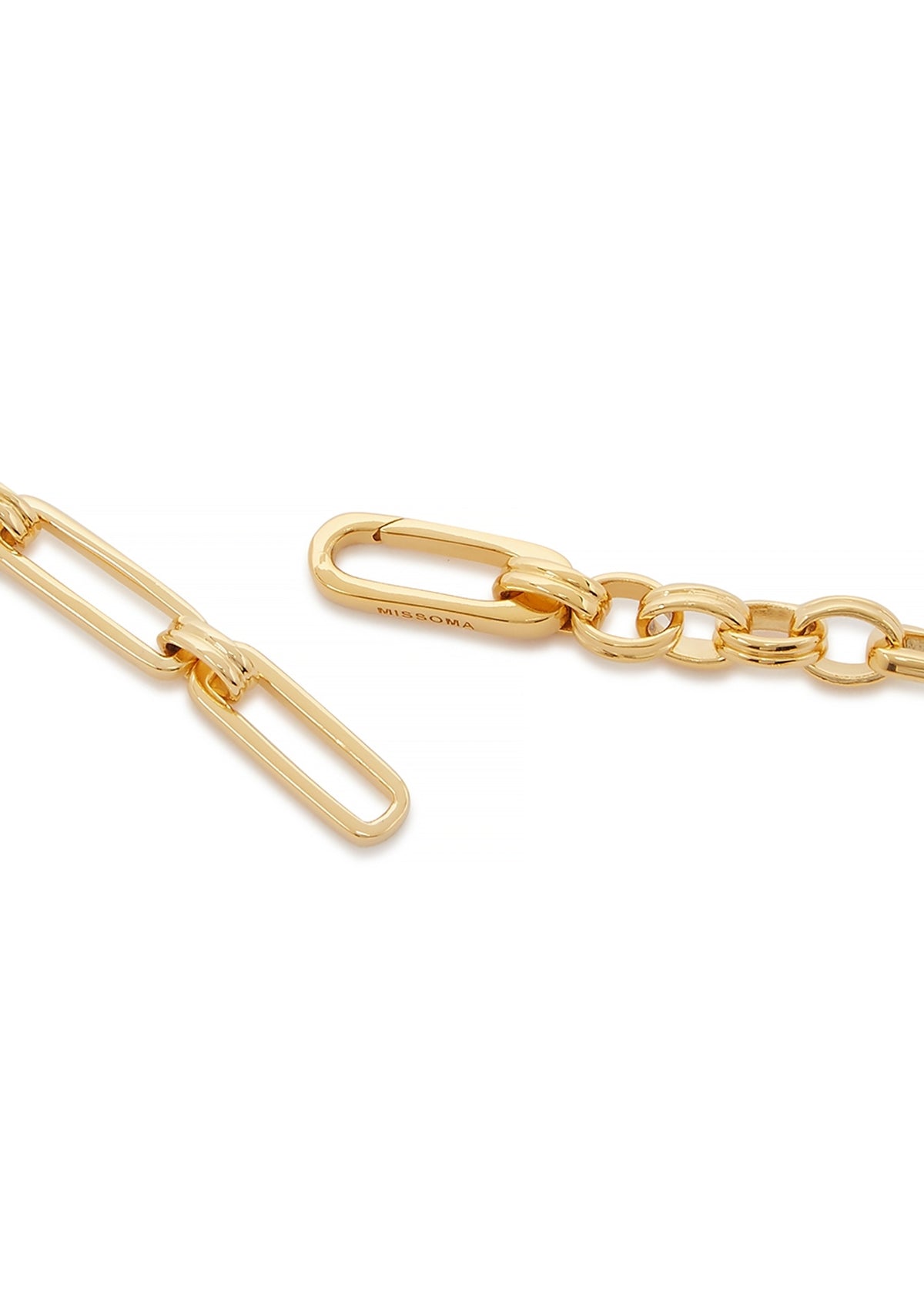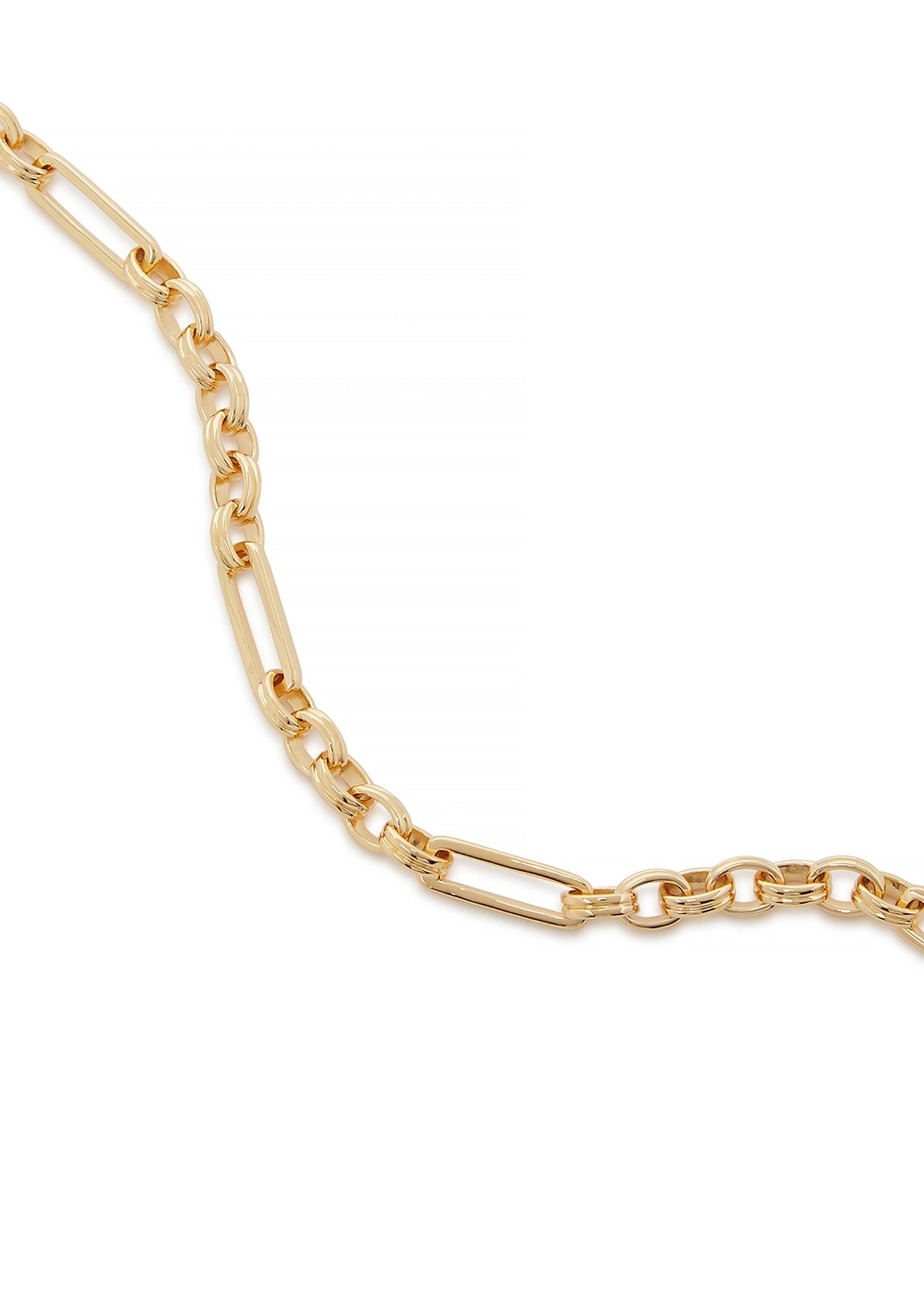 18kt gold-plated vermeil with circular and rectangular link design. Drop: 22 cm. Designer-stamped lobster clasp fastening.