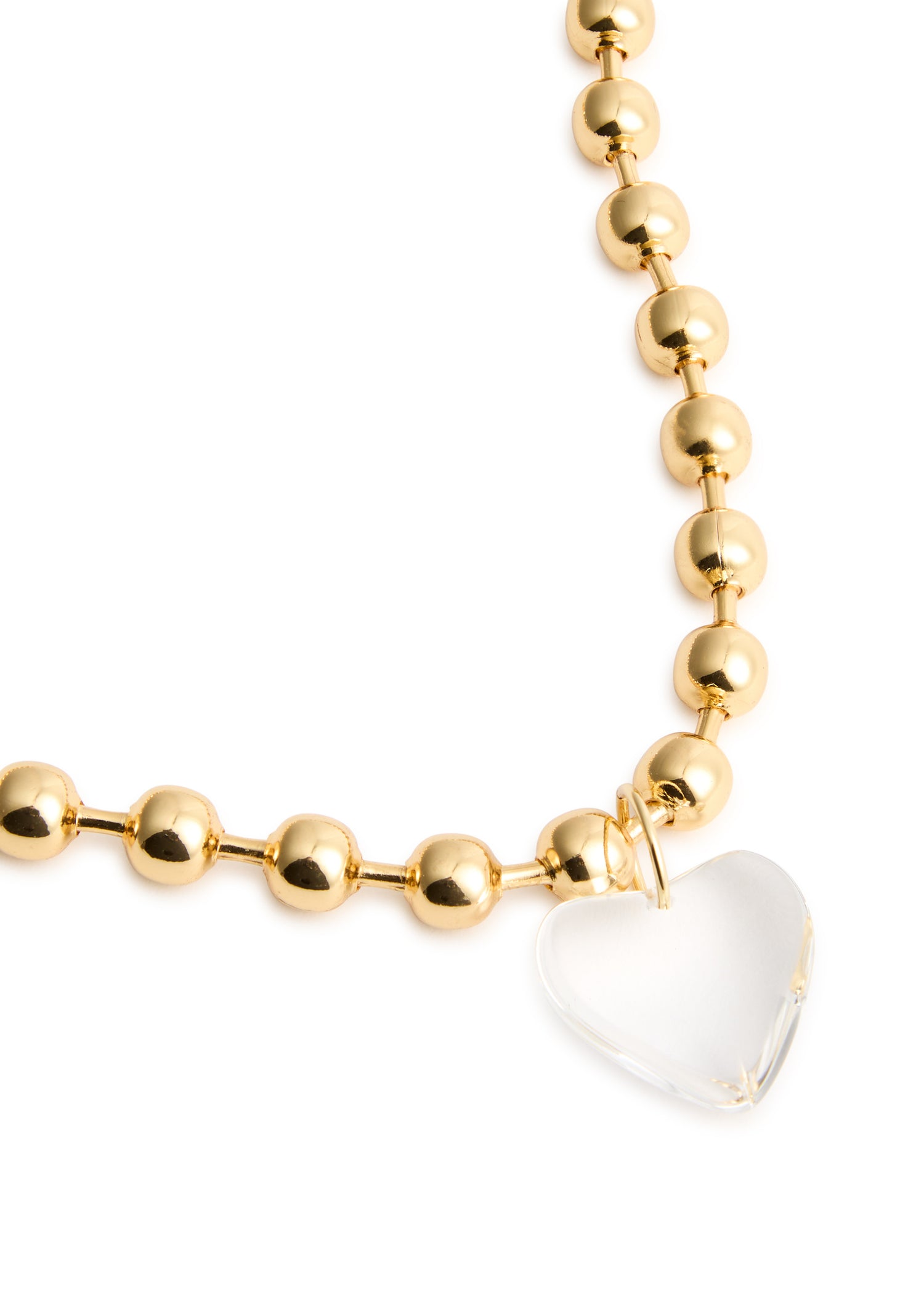 Beaded design with heart pendant and designer tag. Length: 48 cm, Pendant dimensions: 2.5 cm x 2.5 cm. Adjustable lobster-clasp fastening.
