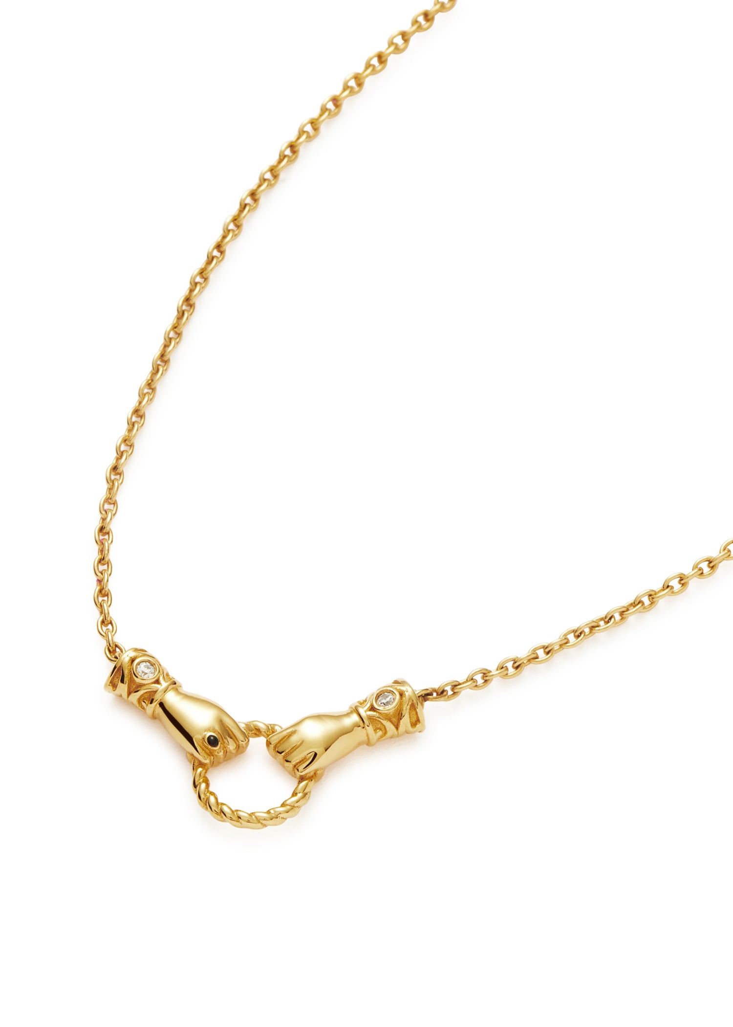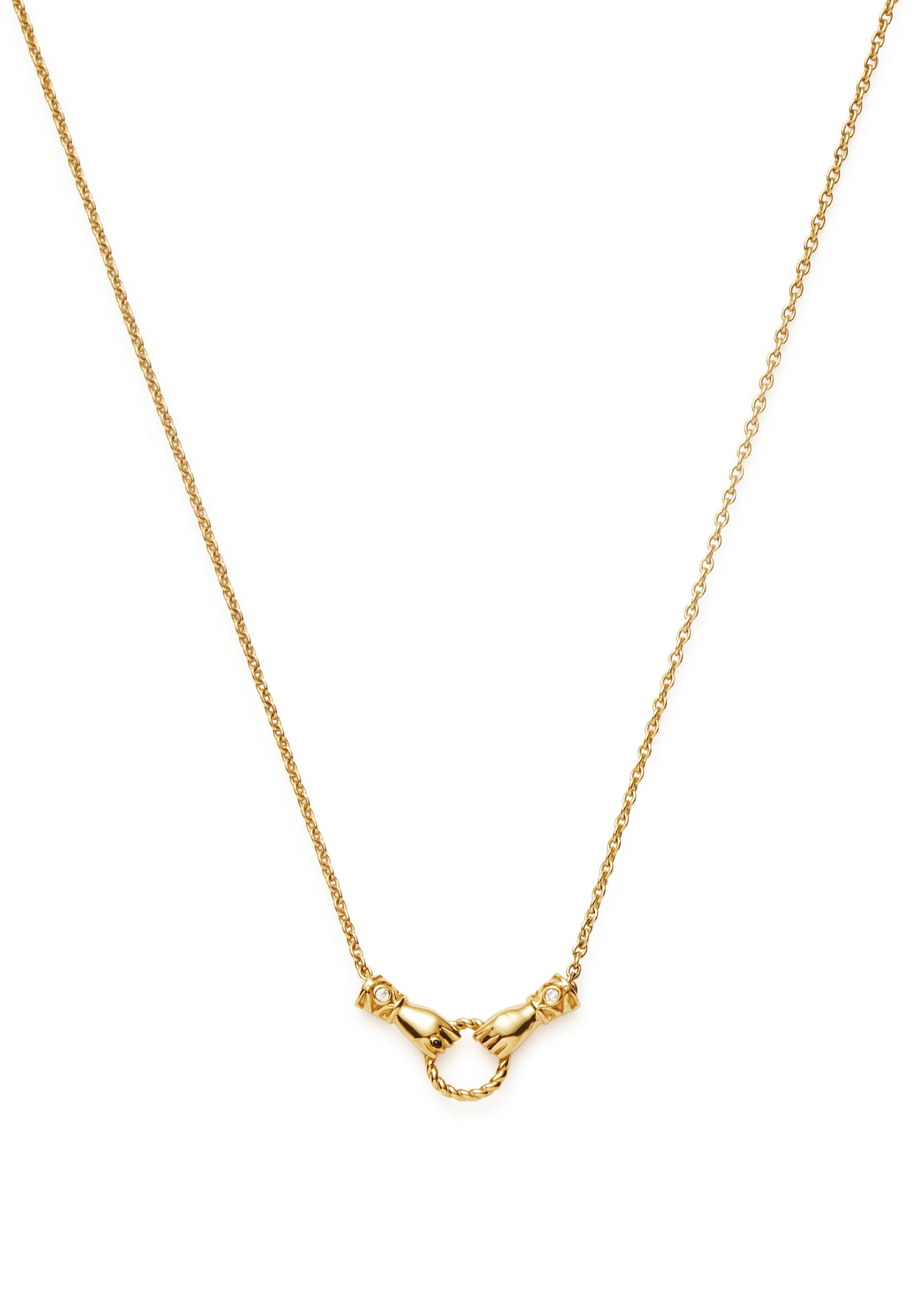 18kt recycled gold-plated with hands and ring pendant, crystal embellishments, and enamel detail. Length: 50 cm, Pendant dimensions: 1.3 cm x 2.2 cm. Adjustable lobster-clasp fastening.
