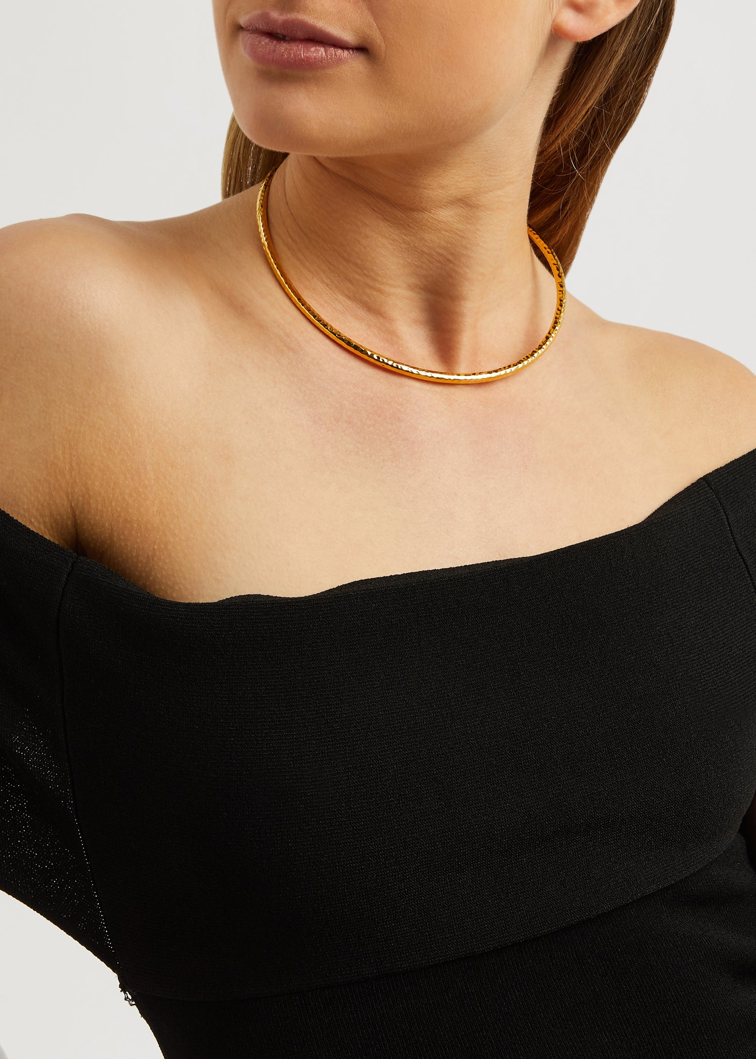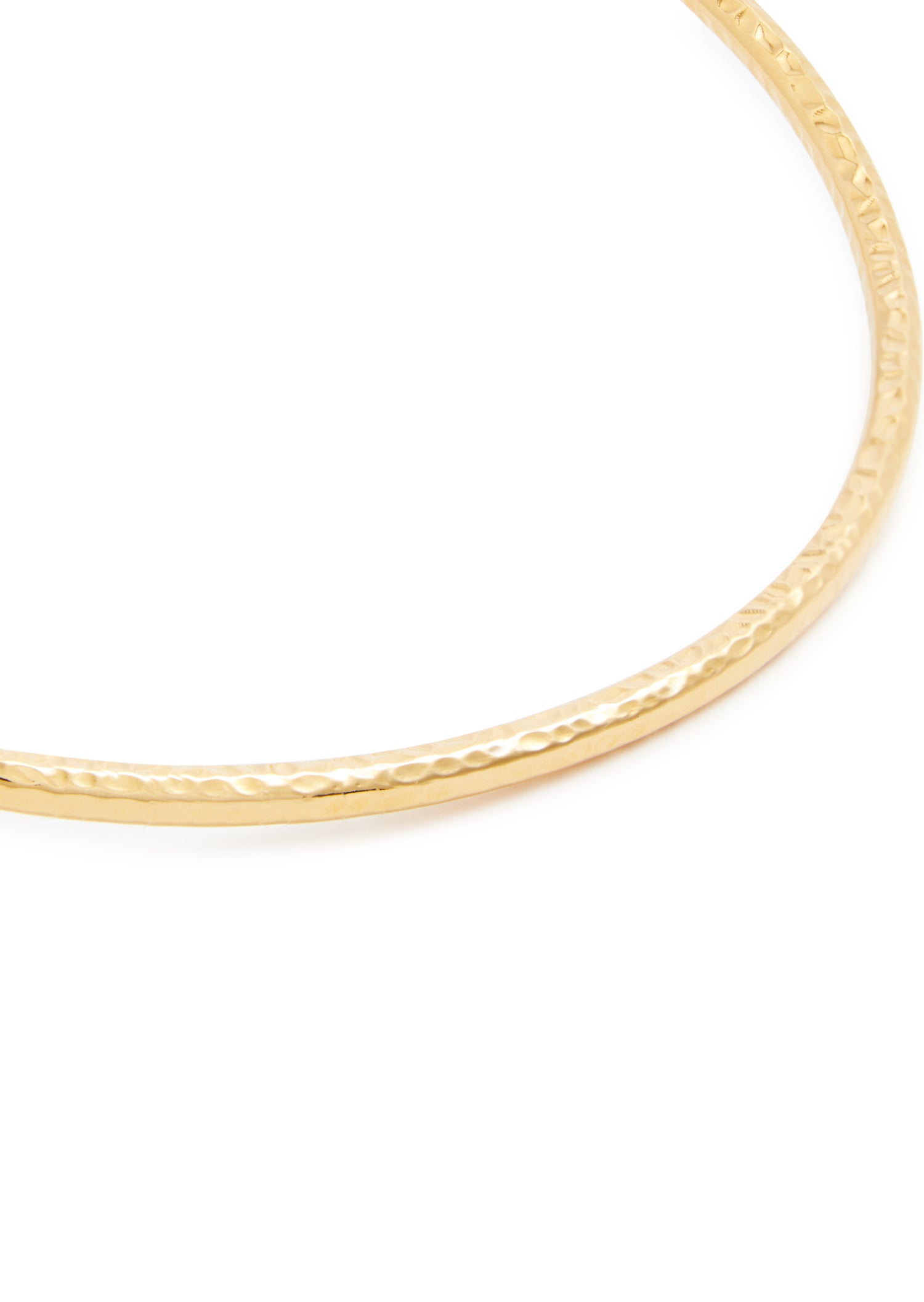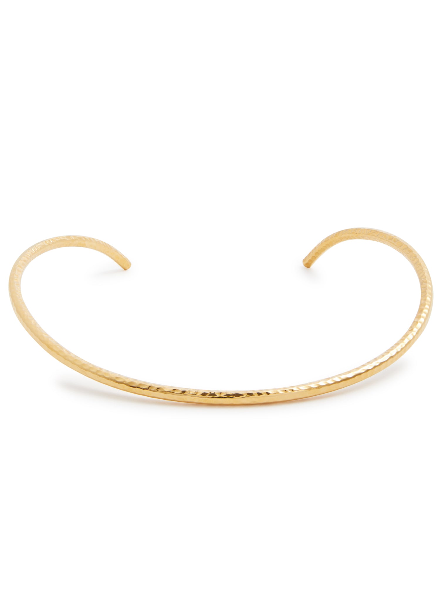 This Golden 24kt Gold-Plated Choker by Anni Lu captures a refined simplicity with its hammered design, perfect for those who appreciate a bold yet understated accessory. This choker adds a touch of elegance to any outfit and can be easily layered with other pieces for a versatile, chic look.