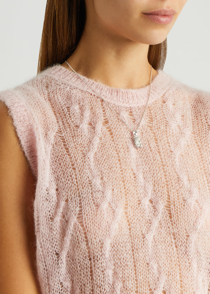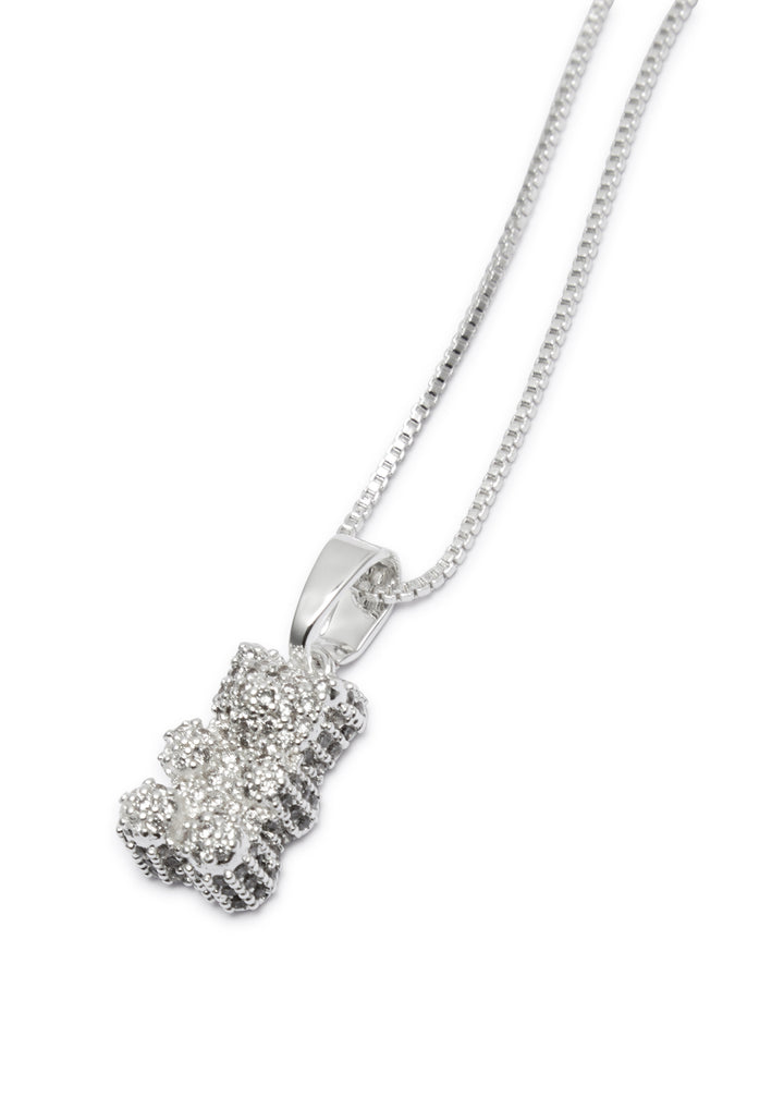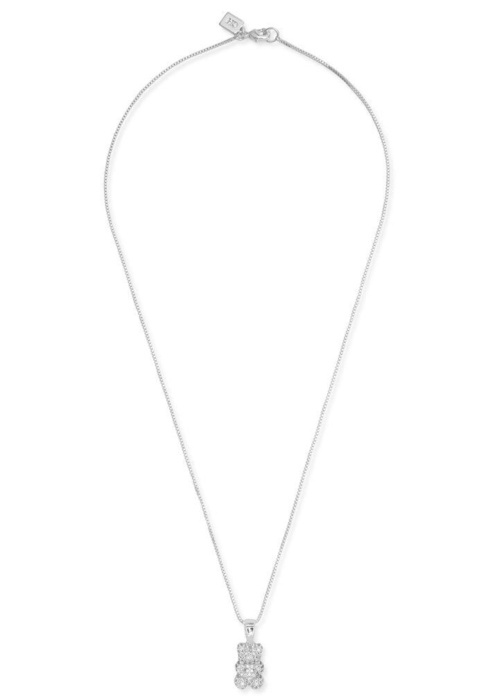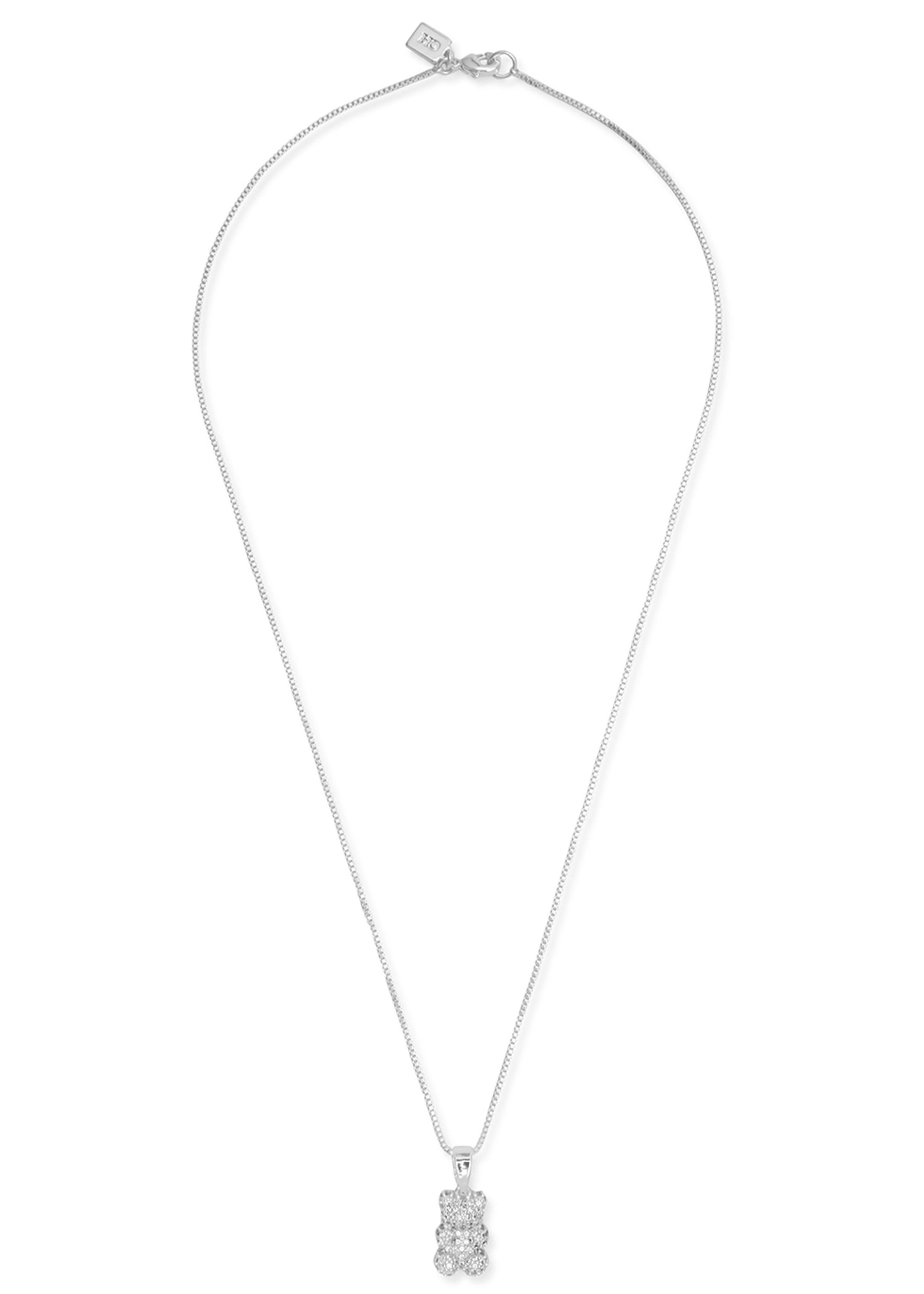 Silver-plated with pavé crystal-embellished bear charm and designer tag. Drop: 27 cm. Lobster-clasp fastening.