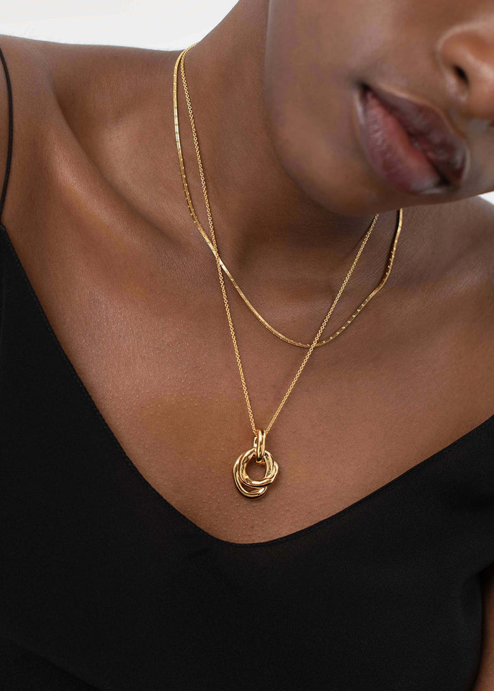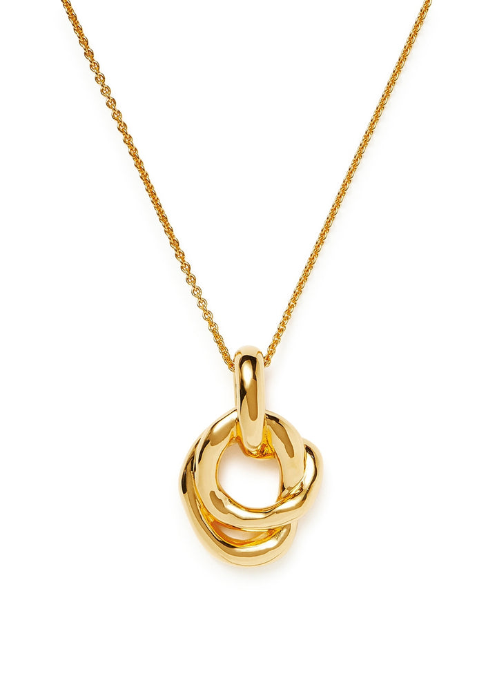 This Molten 18kt Gold-Plated Necklace by Missoma offers a refined twist with its double pendant design, adding a subtle statement to any ensemble. Ideal for layering or wearing solo, this necklace captures Missoma’s commitment to modern, everyday luxury.