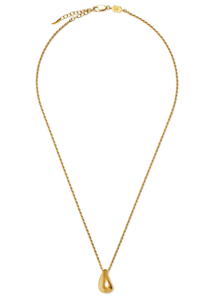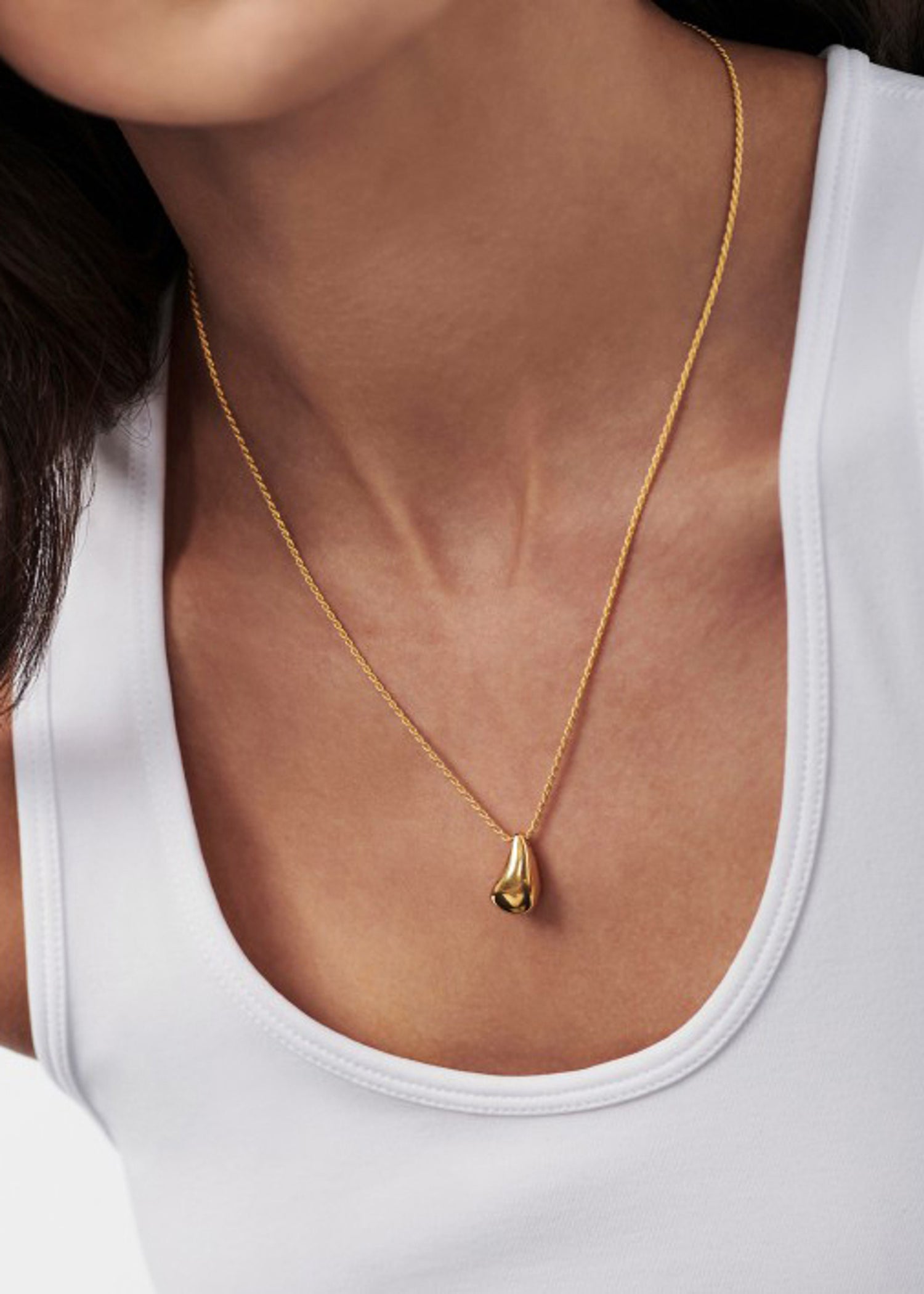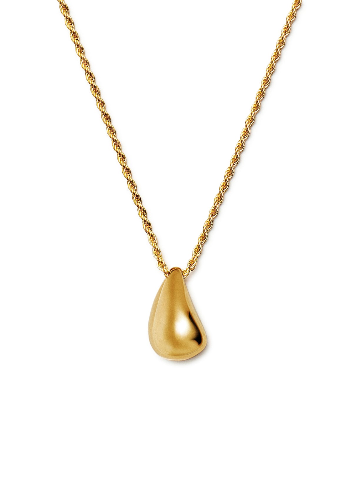 Hand-finished in 18kt recycled gold vermeil on recycled sterling silver, featuring a sculpted droplet pendant. Adjustable lobster-clasp fastening; chain length adjustable from 41 cm to 45 cm. Pendant dimensions: 1.5 cm x 0.9 cm.