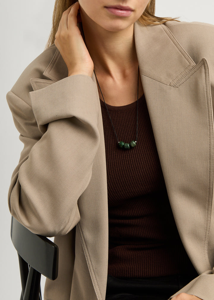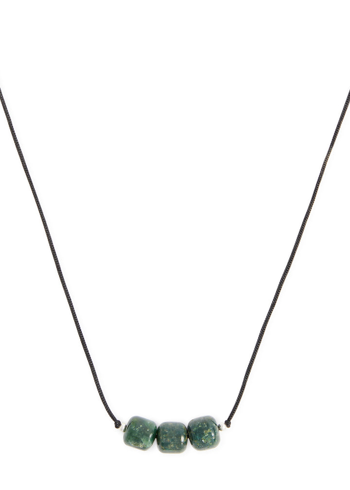 This Dale Beaded Cord Necklace by Daphine X Monikh combines jade beads with silver-plated hardware, embodying the collection’s minimalist and sophisticated charm. The adjustable tie fastening makes it an effortlessly chic accessory that transitions from daywear to evening.