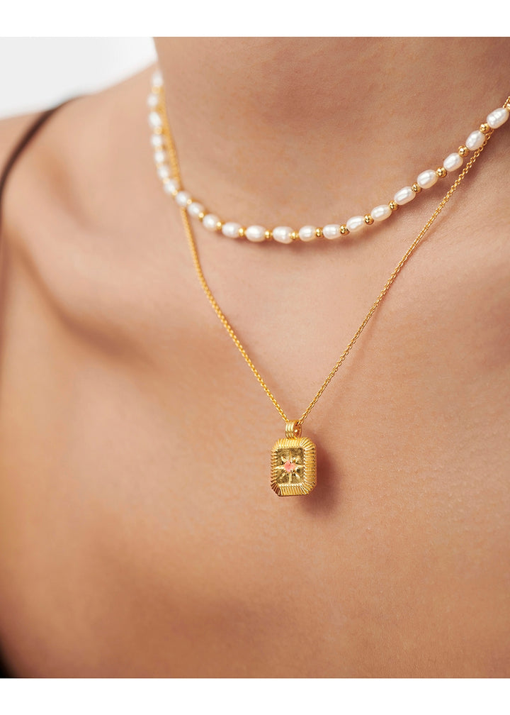 Crafted in 18kt gold-plated vermeil on recycled sterling silver with a textured pendant featuring pink opal. Clasp fastening; chain length: 45 cm.