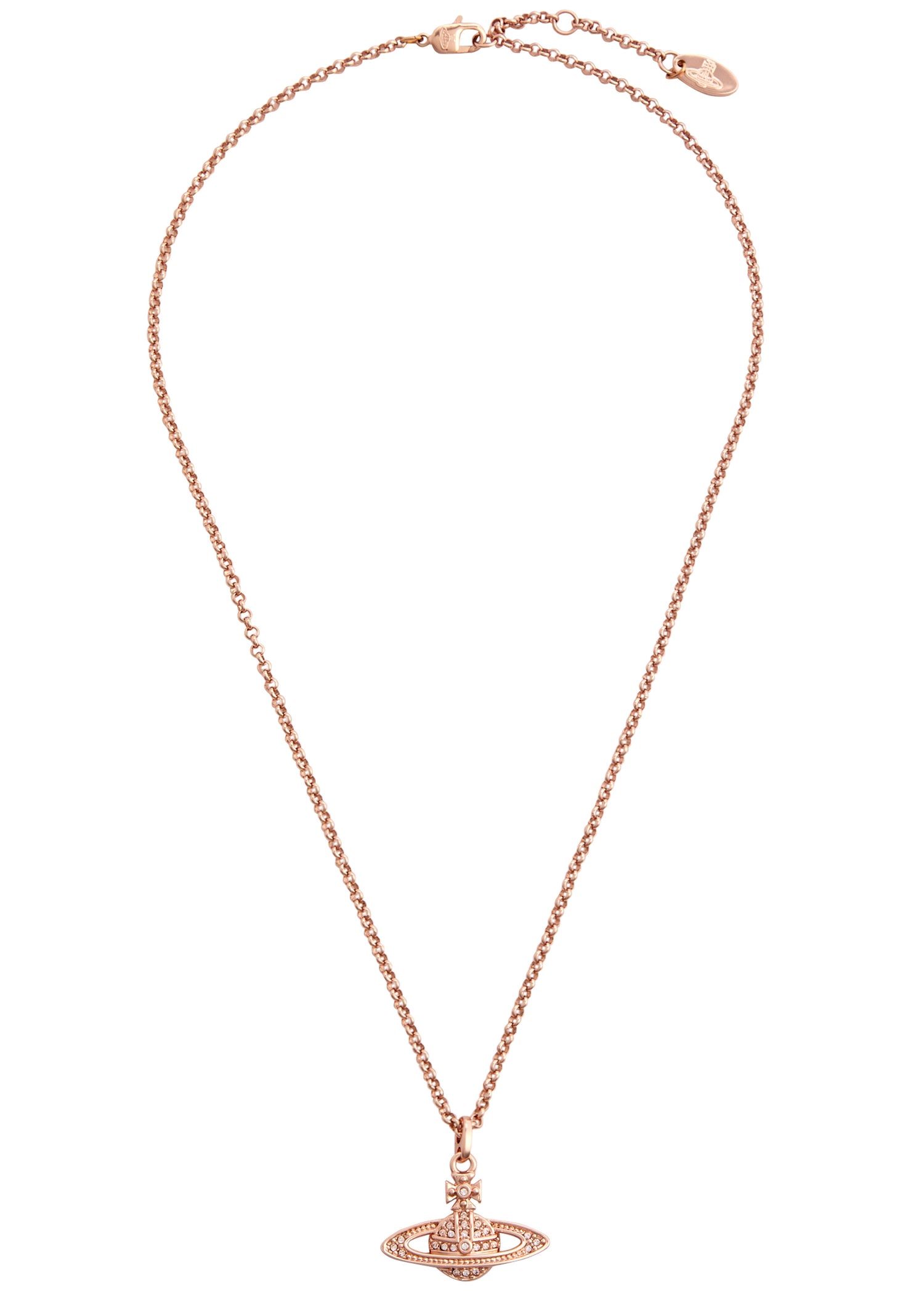 This Mini Bas Relief embellished orb necklace by Vivienne Westwood channels the brand's rebellious and avant-garde spirit. Featuring the iconic orb pendant, this piece symbolizes bold individuality and the brand’s British heritage. Intricate pavé crystal embellishments add a touch of opulence, making it versatile for day or evening wear. Its adjustable length allows for layering or a standalone look.