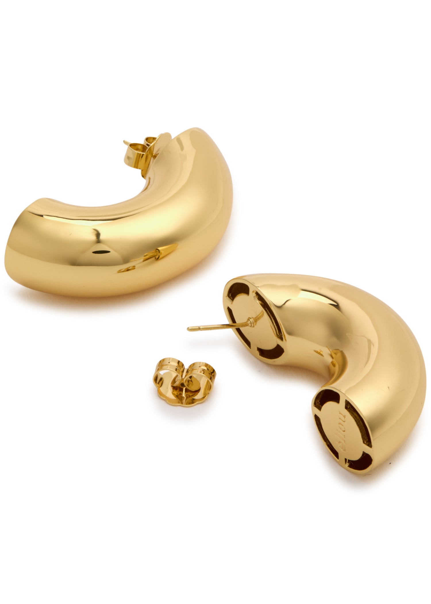 These Ellis 18kt gold-plated brass earrings by Éliou bring a playful, beach-inspired vibe with a chunky, artisanal design and cut-out details. Handcrafted from recycled materials, they embody the brand’s unique fusion of modern and organic elements, perfect for adding a carefree, statement touch to any outfit.