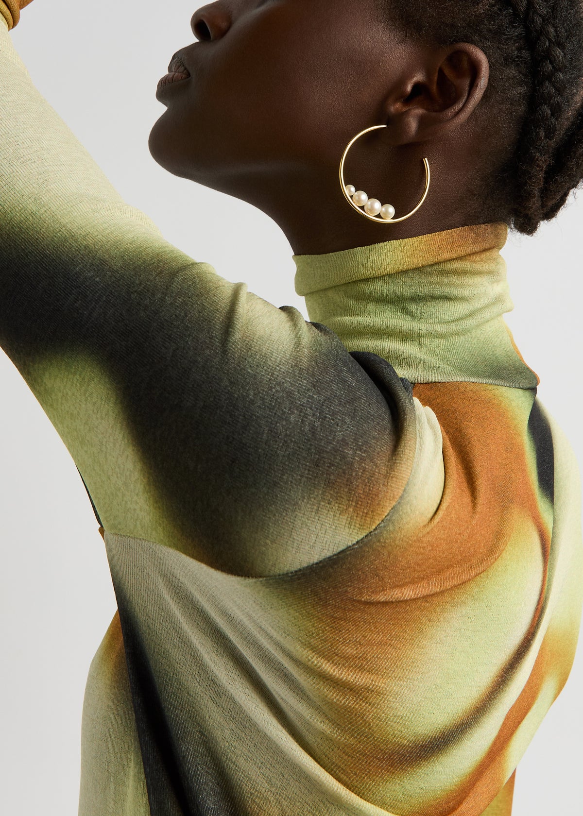 Trio Pearl large 14kt gold vermeil hoop earrings