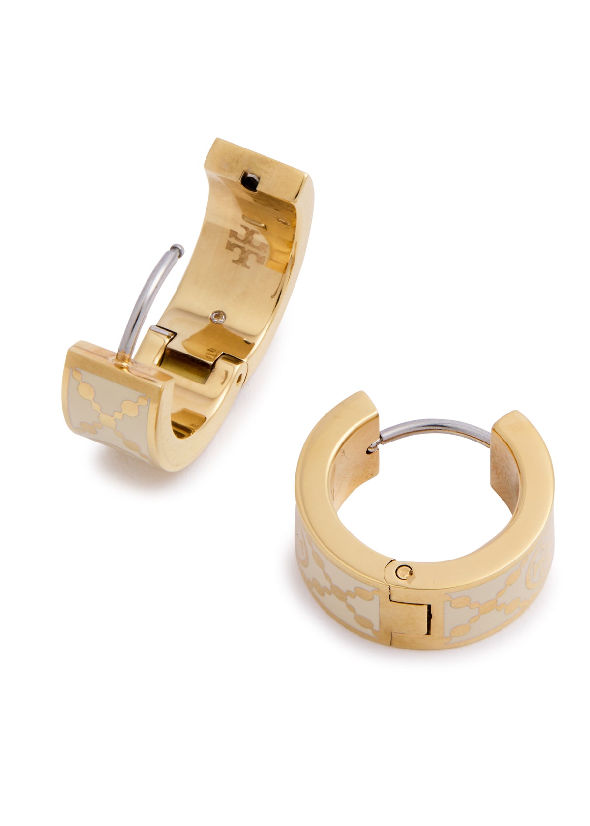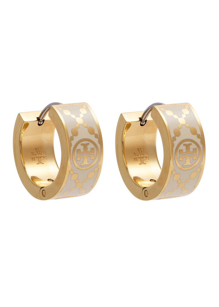 These T Monogram small enamelled hoop earrings by Tory Burch bring a modern twist to classic American elegance. Featuring the brand's iconic monogram logo with enamel inserts, these hoops add a touch of vibrant sophistication, ideal for those seeking stylish, everyday accessories with a signature Tory Burch flair.