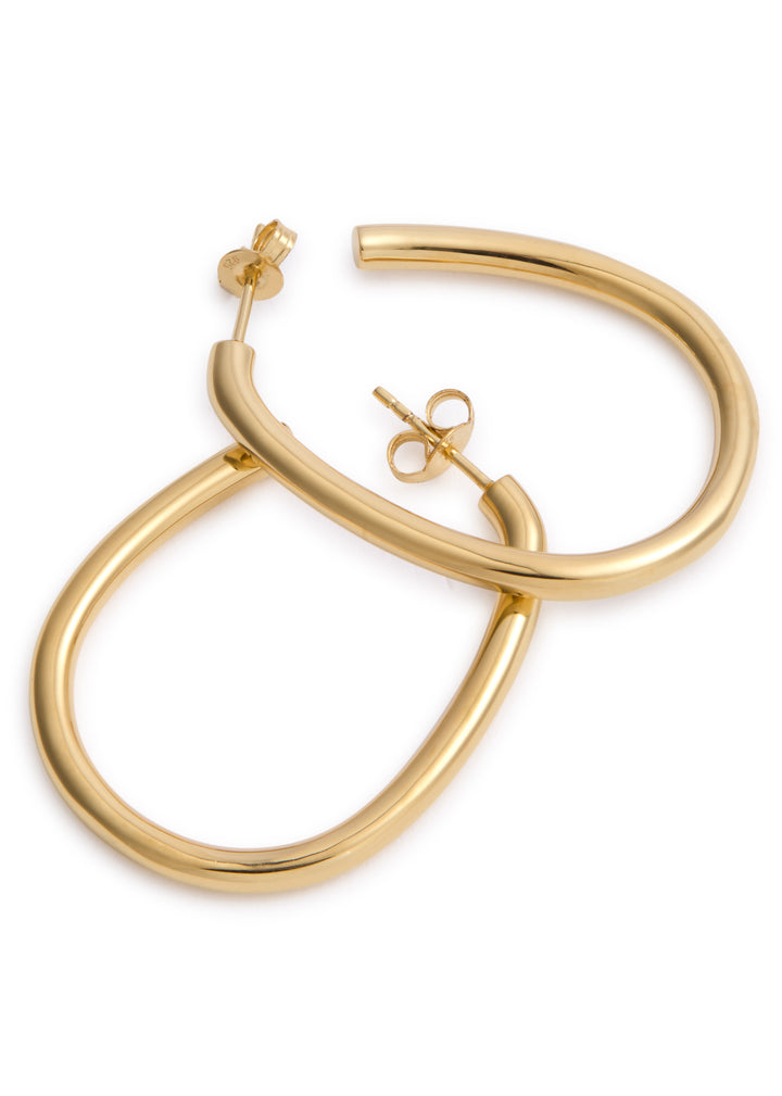 These Oval large 14kt gold vermeil hoop earrings by Otiumberg showcase a modern, elongated oval shape, providing a refined statement for both casual and formal looks. Crafted with Otiumberg's commitment to sustainable luxury, these hoops reflect the brand's minimalist elegance and versatility.