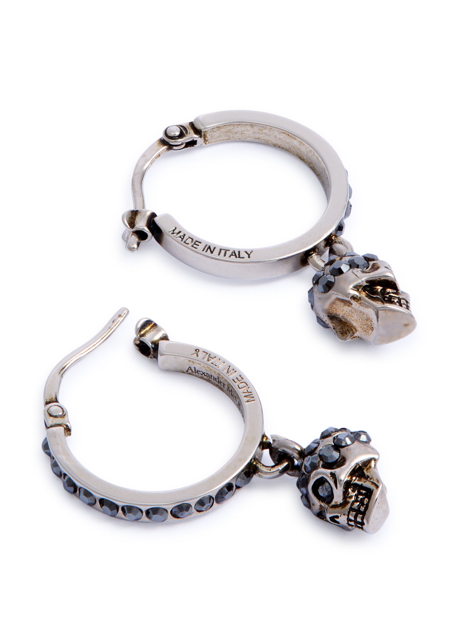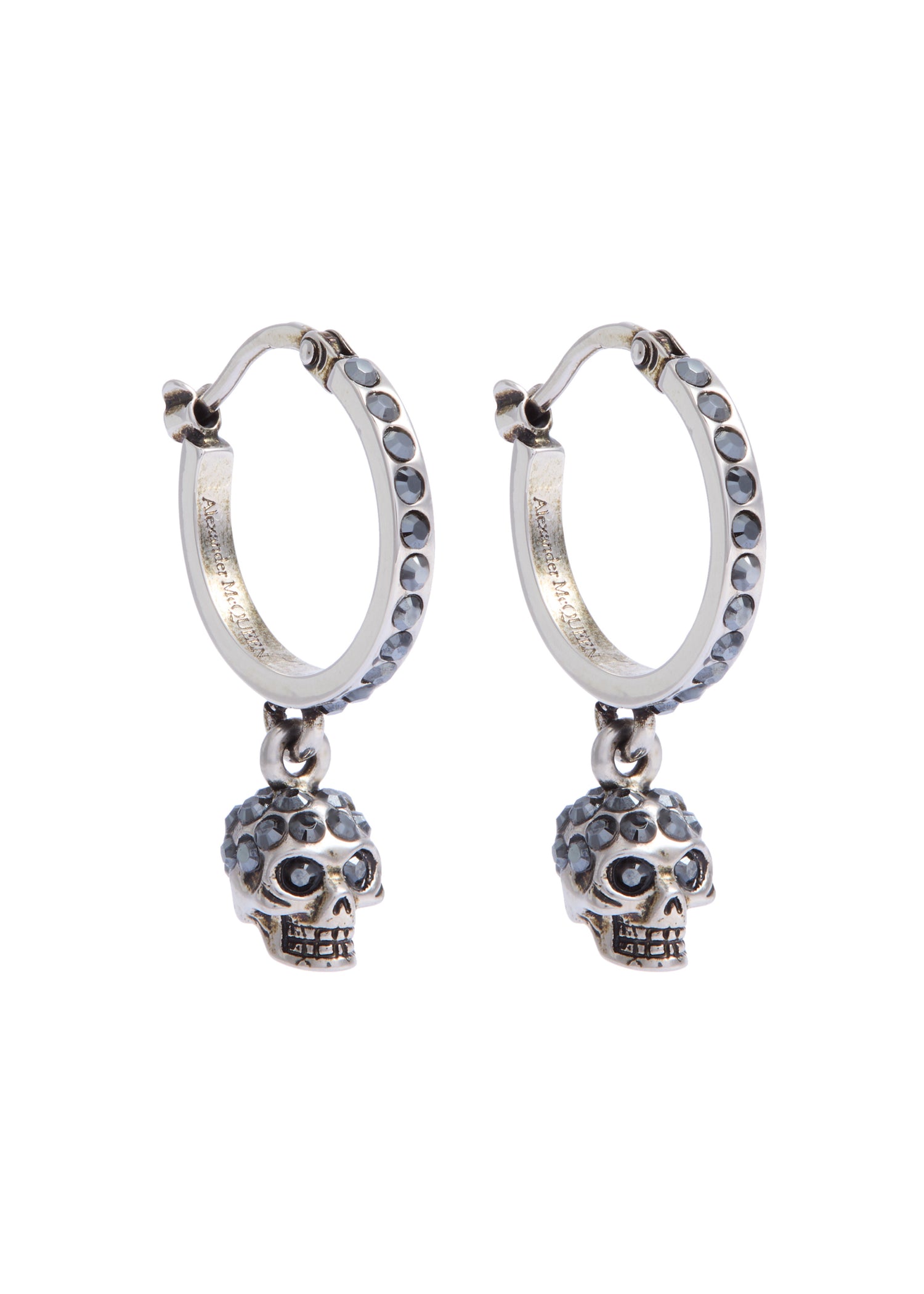 These Skull crystal-embellished hoop earrings by Alexander McQueen reflect the brand’s darkly romantic aesthetic with a striking skull pendant adorned with crystals. These hoops add an edgy yet luxurious touch, embodying McQueen's signature fusion of rebellious style and fine craftsmanship.