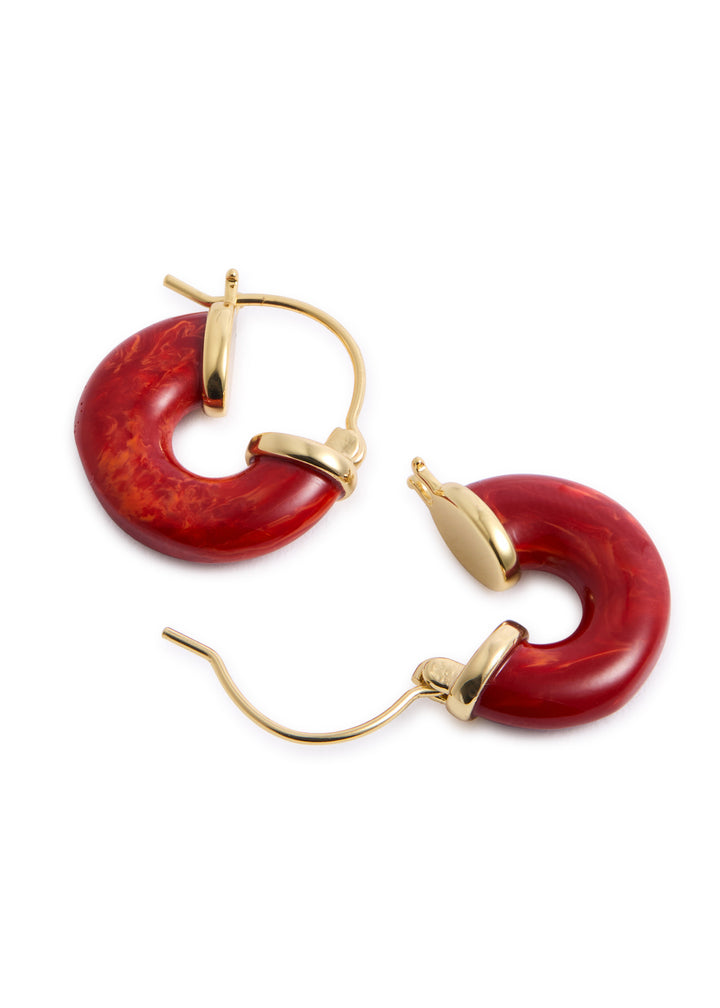 Handmade in 18kt gold-plated metal with a resin hoop, sleeper fastening for pierced ears. Drop: 2 cm.