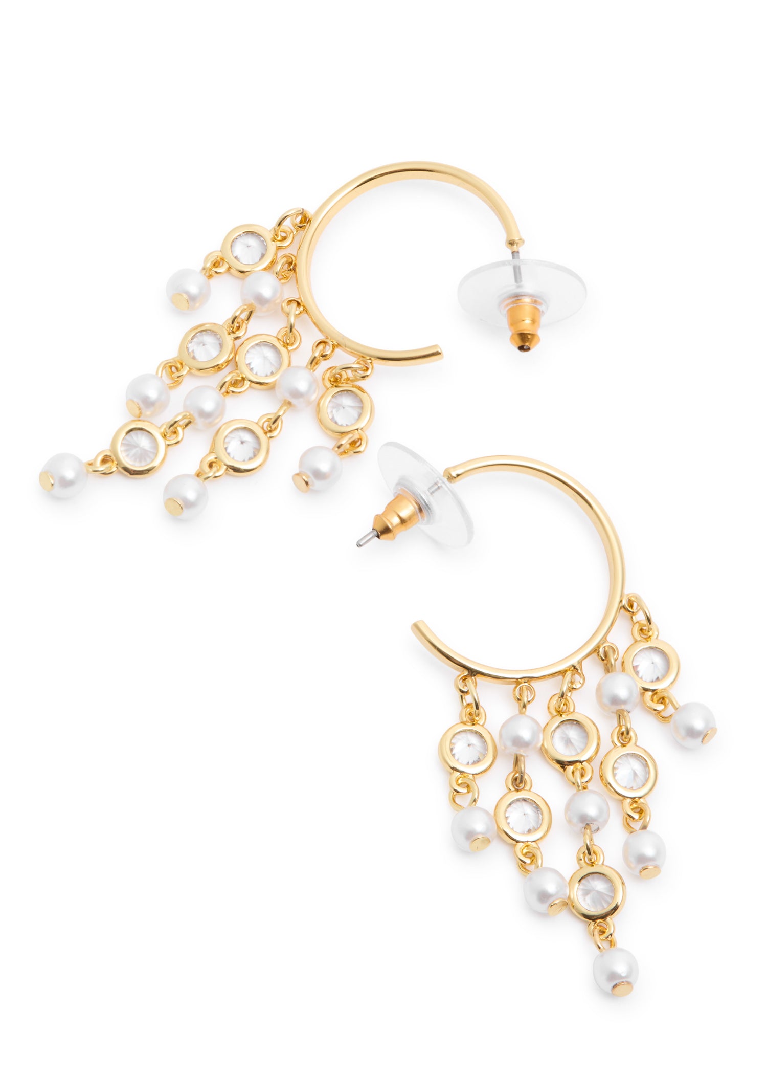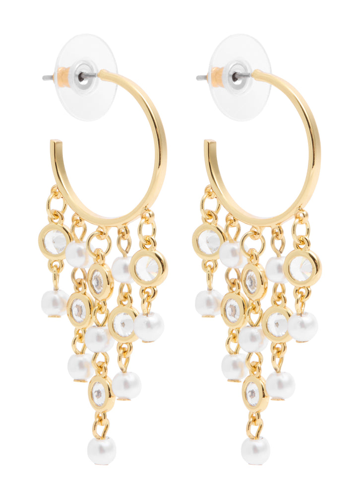Crafted in metal with pearl and crystal embellishments and fringed trim, post fastening for pierced ears. Drop: 5 cm.