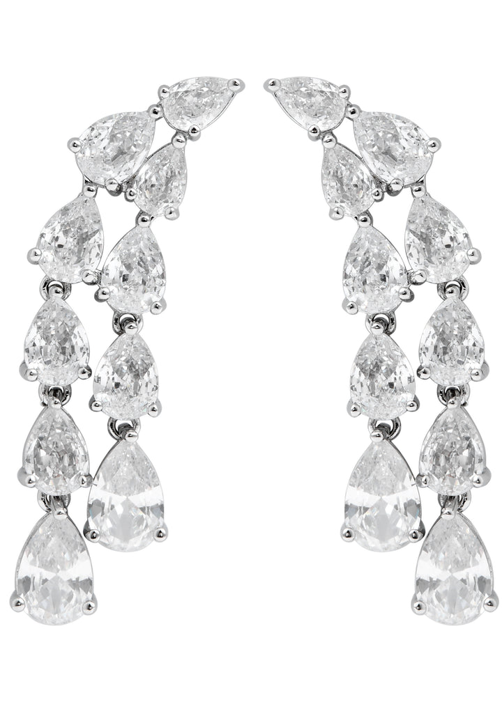 These Crystal-Embellished Rhodium-Plated Drop Earrings by Cz By Kenneth Jay Lane offer a glamorous double-layered, fringed design adorned with crystals. Ideal for evening wear, they capture the brand's red-carpet appeal, adding sparkle and elegance to any outfit.