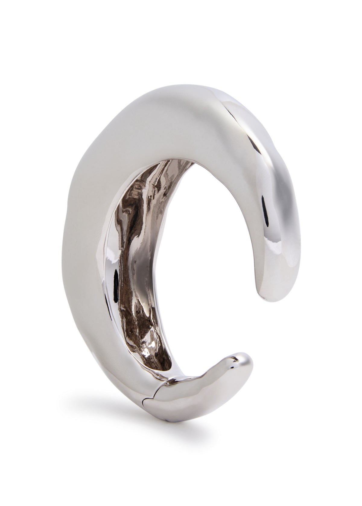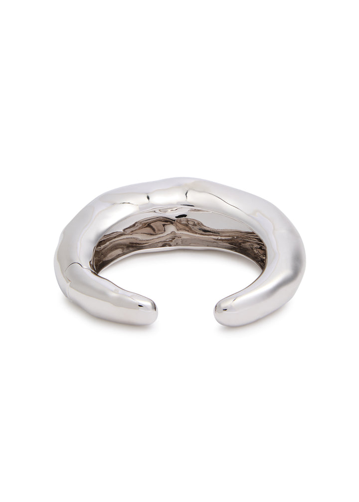 This Large Molten Rhodium-Plated Cuff by Alexis Bittar combines elegance with an edgy, sculptural quality, featuring a molten, sculpted design. Ideal for adding a bold, art-inspired touch, this cuff reflects the brand’s signature fusion of vintage and modern aesthetics.